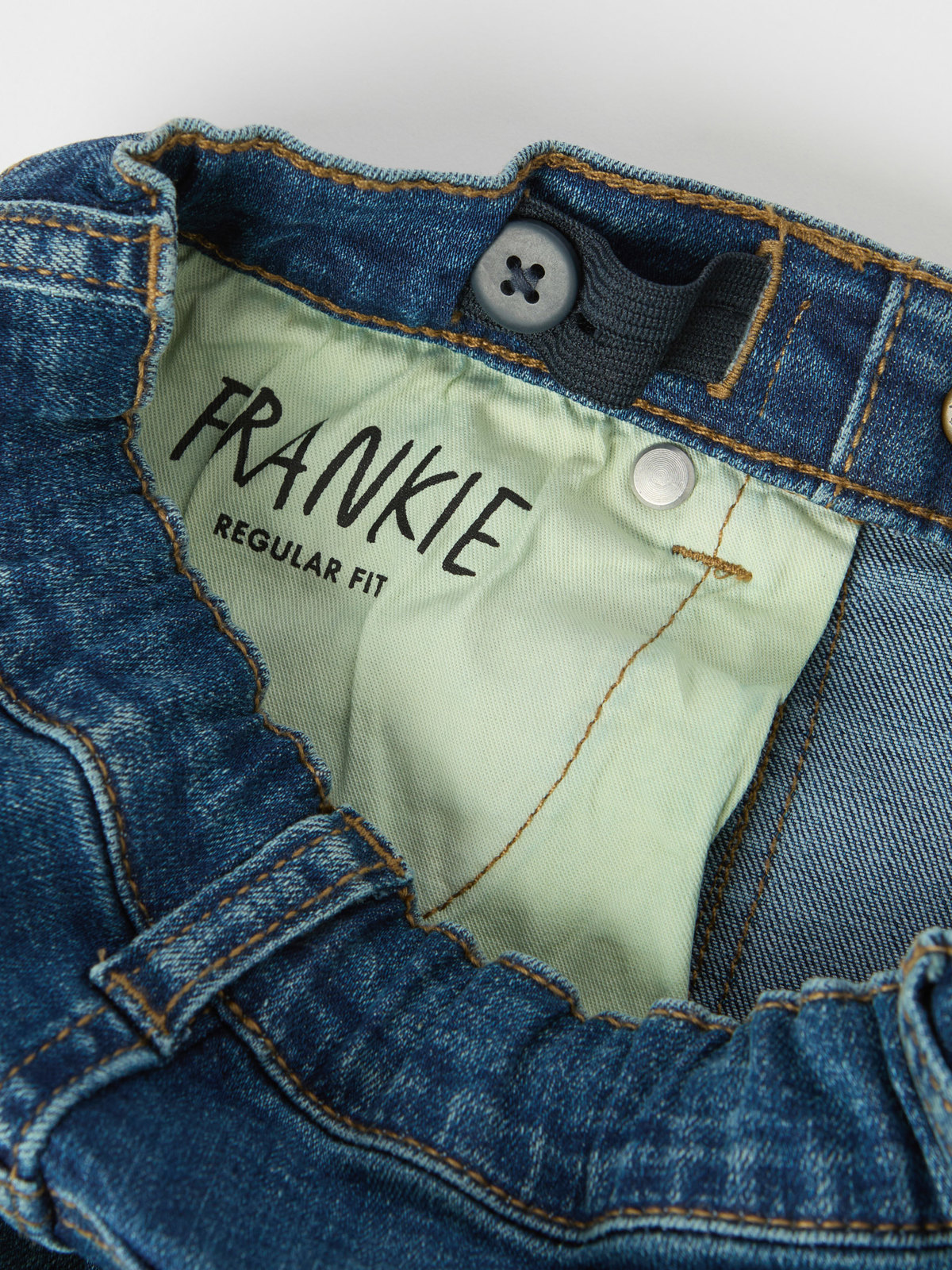 Ha kul i FRANKIE – lekvänliga jeans i dra-på-modell i mjuk stretch. Perfekt till barn som vill ha en mer avslappnad passform och slippa gylf och knapp. Alla våra jeans är från våren 2022 tillverkade i GOTS-certifierad bomull!