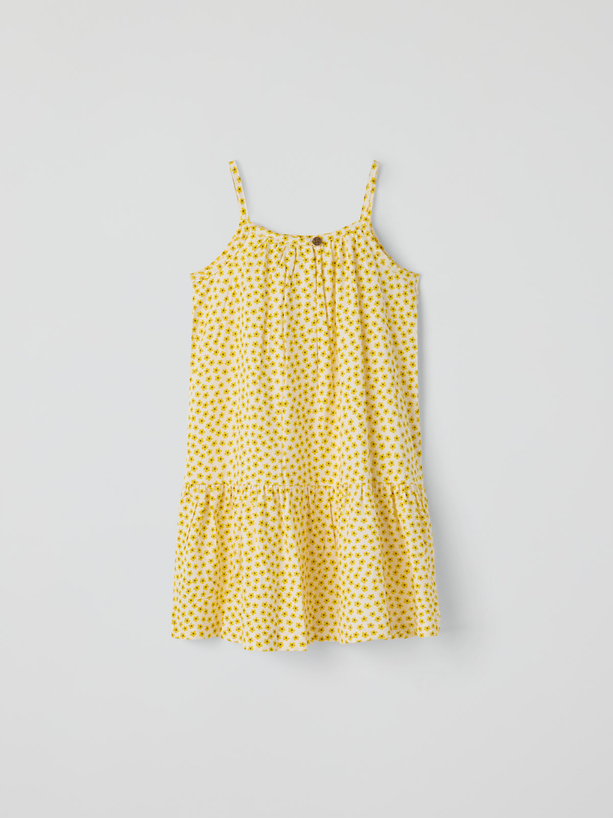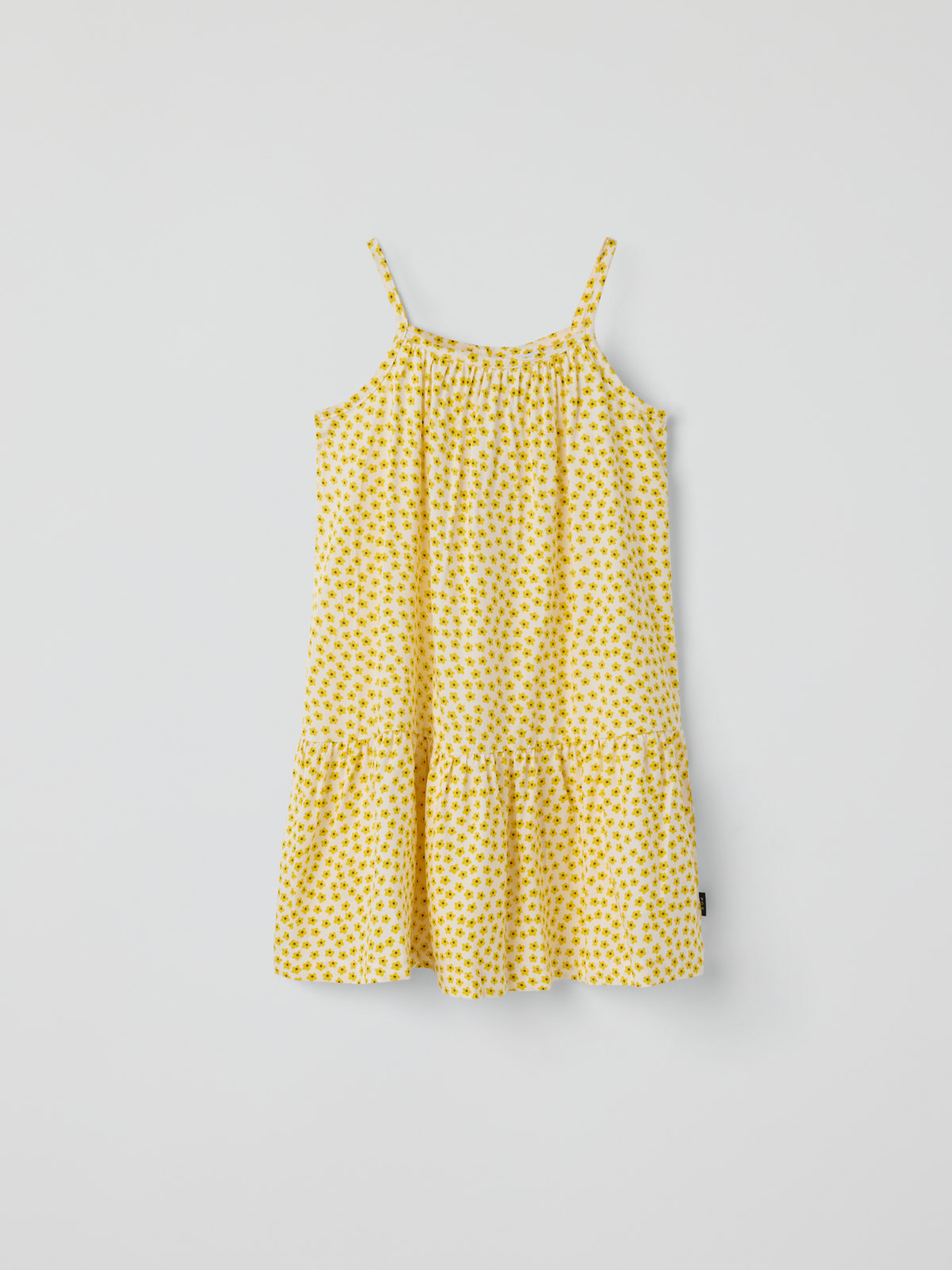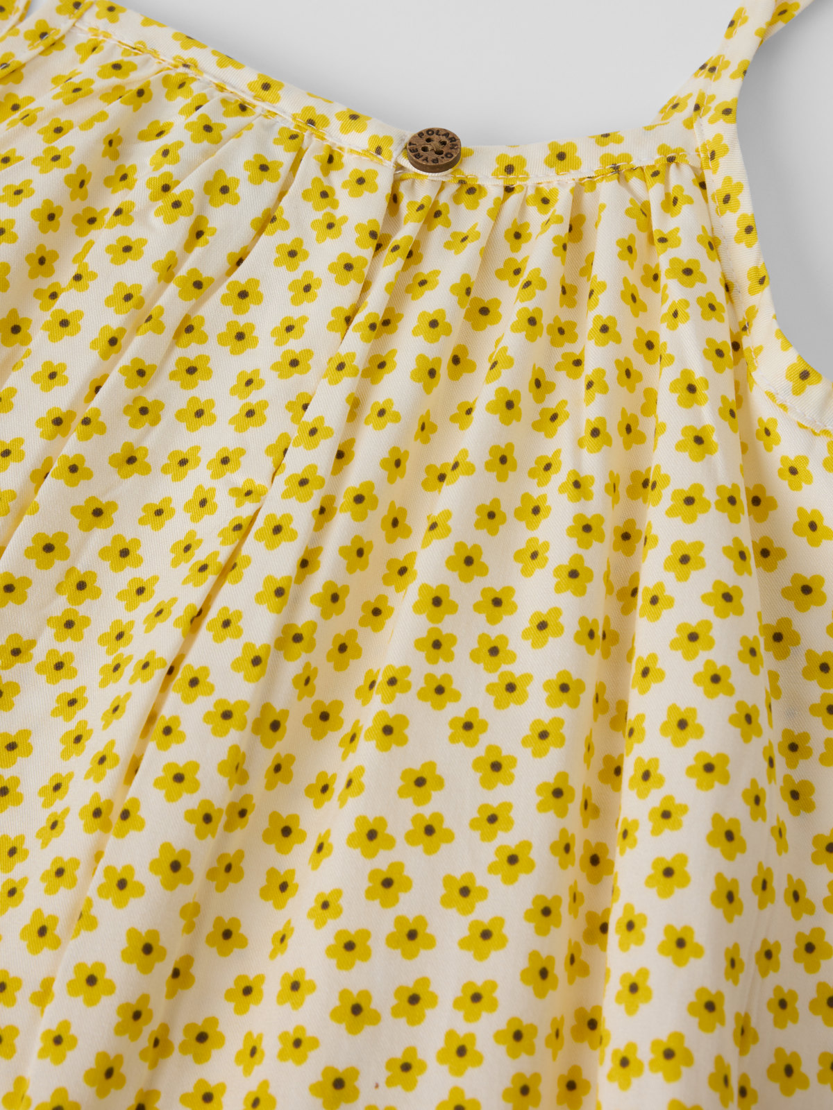 Blommig klänning tillverkad i tunn och sval trikå av Ecovero™ Viscose – perfekt för varma dagar! Klänningen har tunna axelband och rynkad kjoldel.