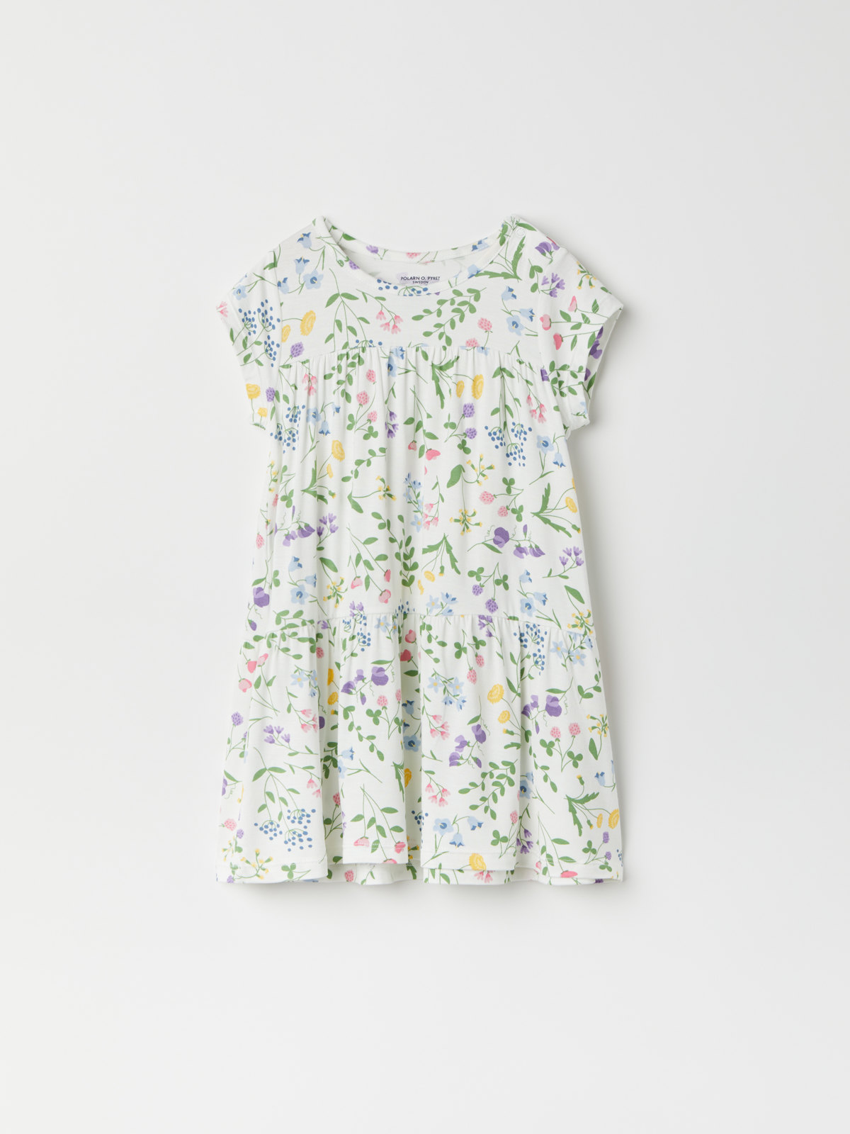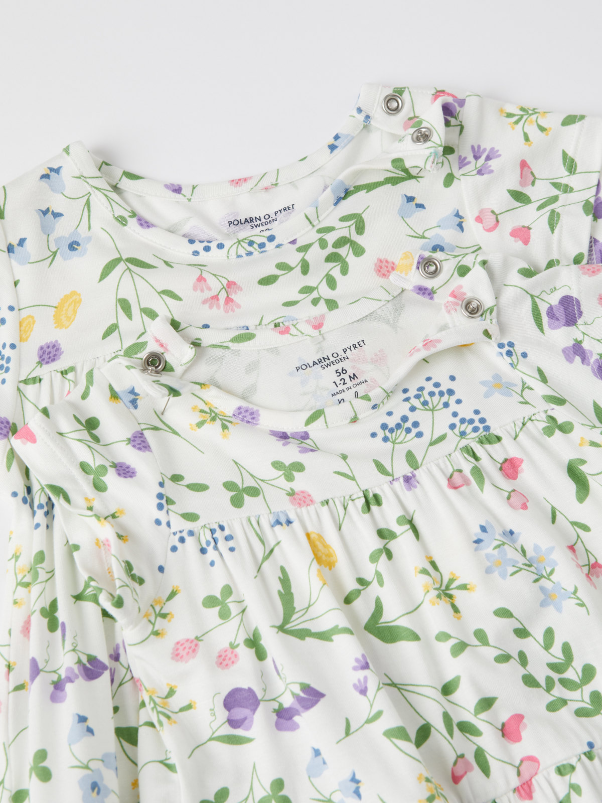 Blommönstrad klänning i tunn viskos för baby. Mjuk och fin för alla tillfällen.