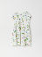 Klänningen har korta ärmar och tryckknappar på ena axeln för att underlätta klädbyten.