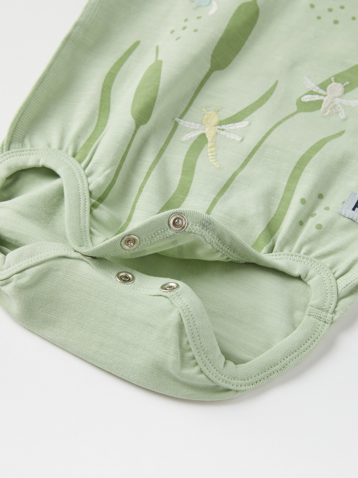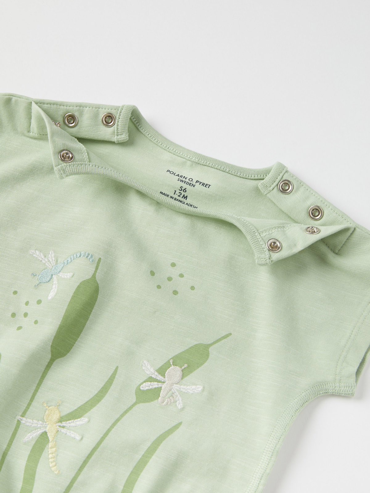 Bodyn har en fin brodyr med trollsländor och är sydd med extra mjuka, platta sömmar som ligger skönt mot känslig hud.