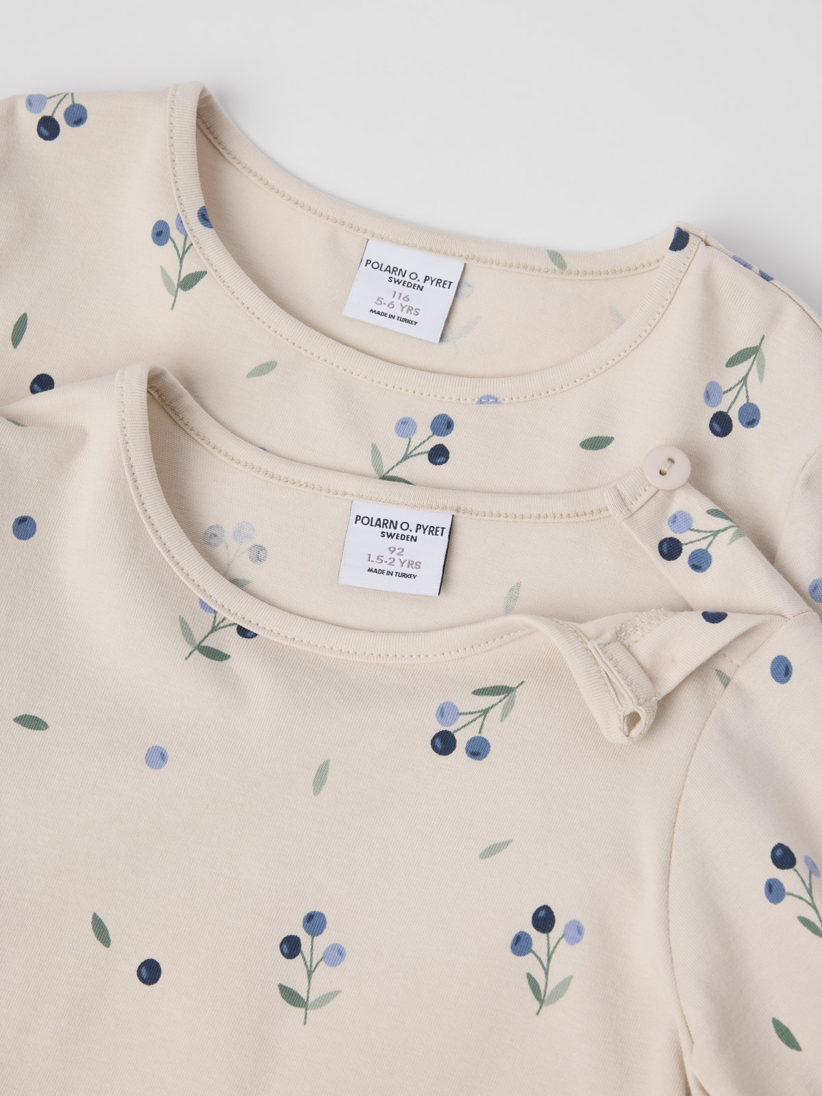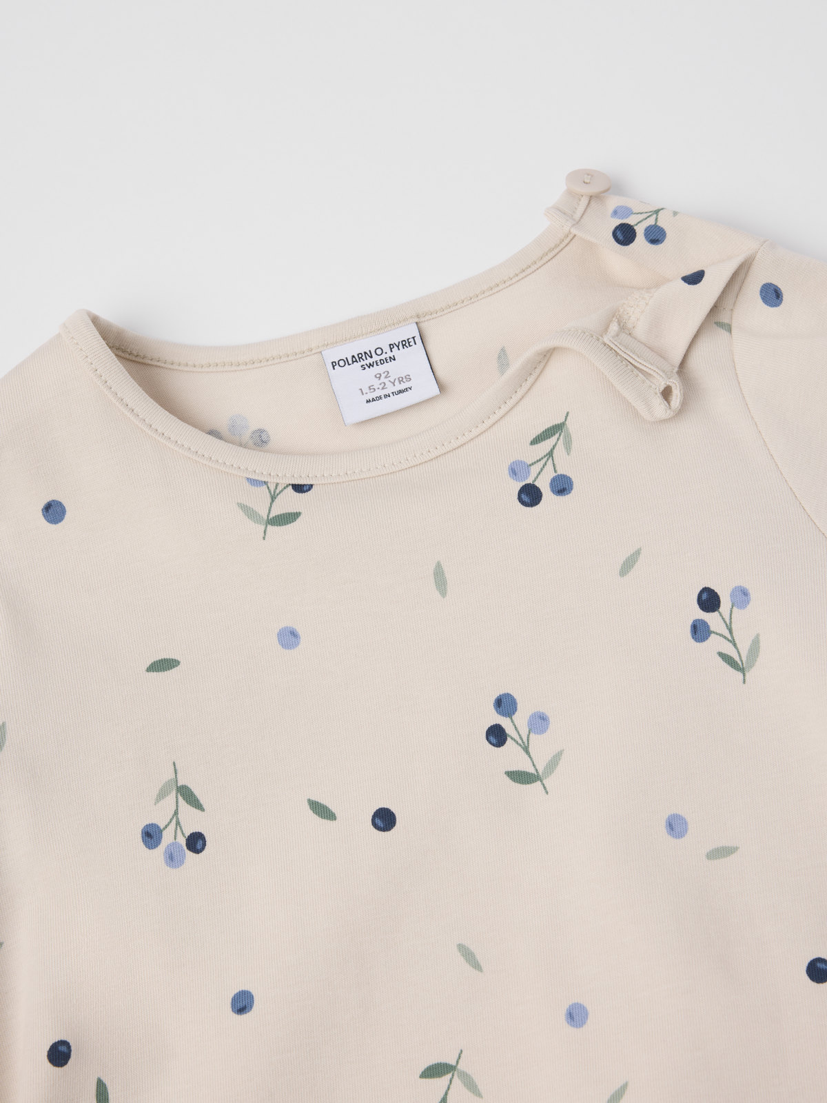 Storlek 86-92 har en knapp på ena axlen för att underlätta klädbyten.