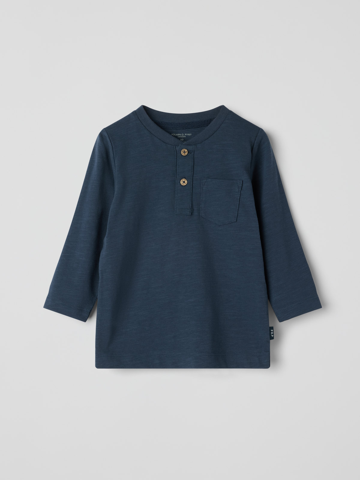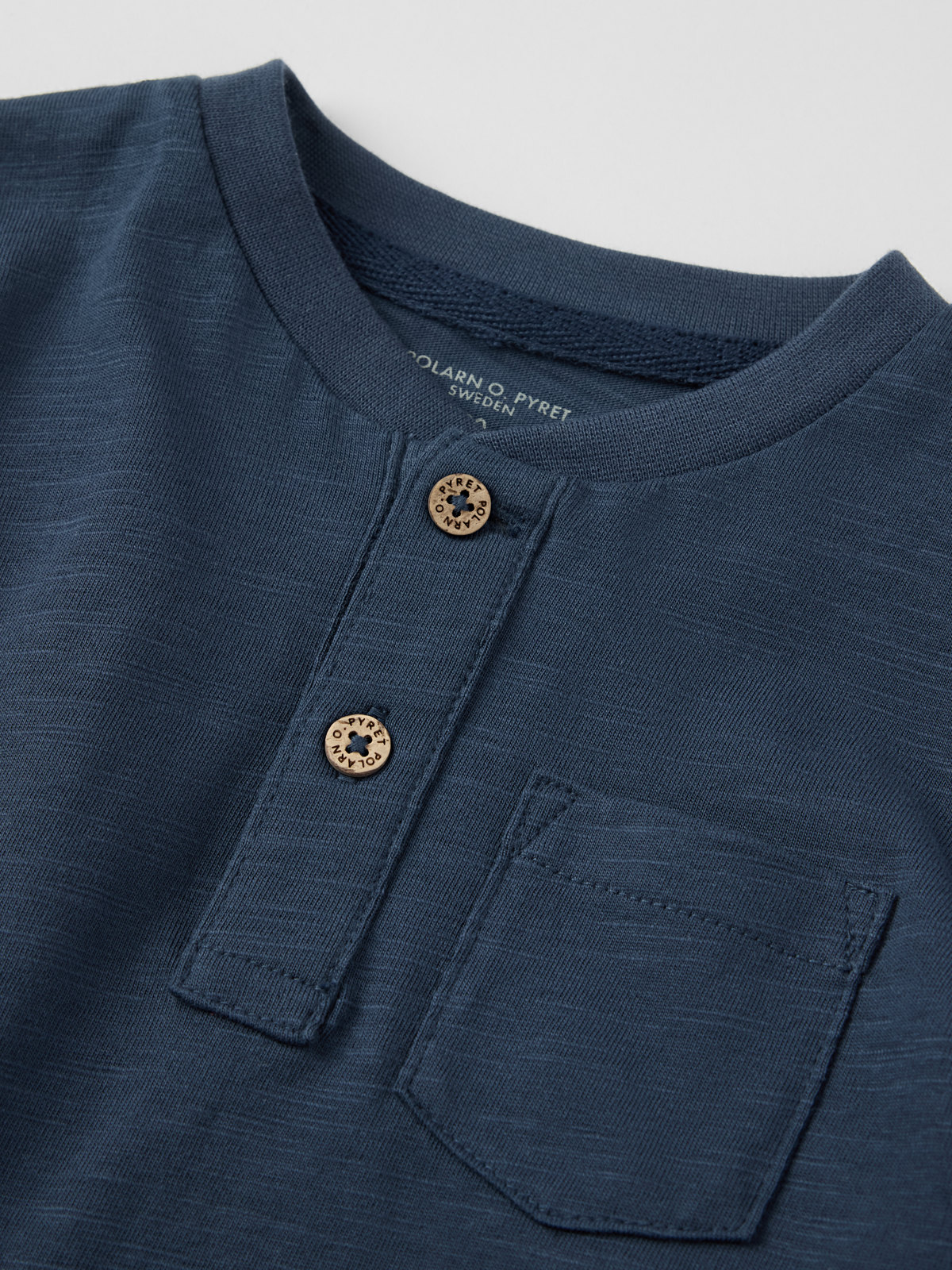Tröja i mjukt slubmaterial av 100% ekologisk bomull – en tunn och följsam vardagsfavorit! Tröjan har en bröstficka och stängs med kort knappslå fram.