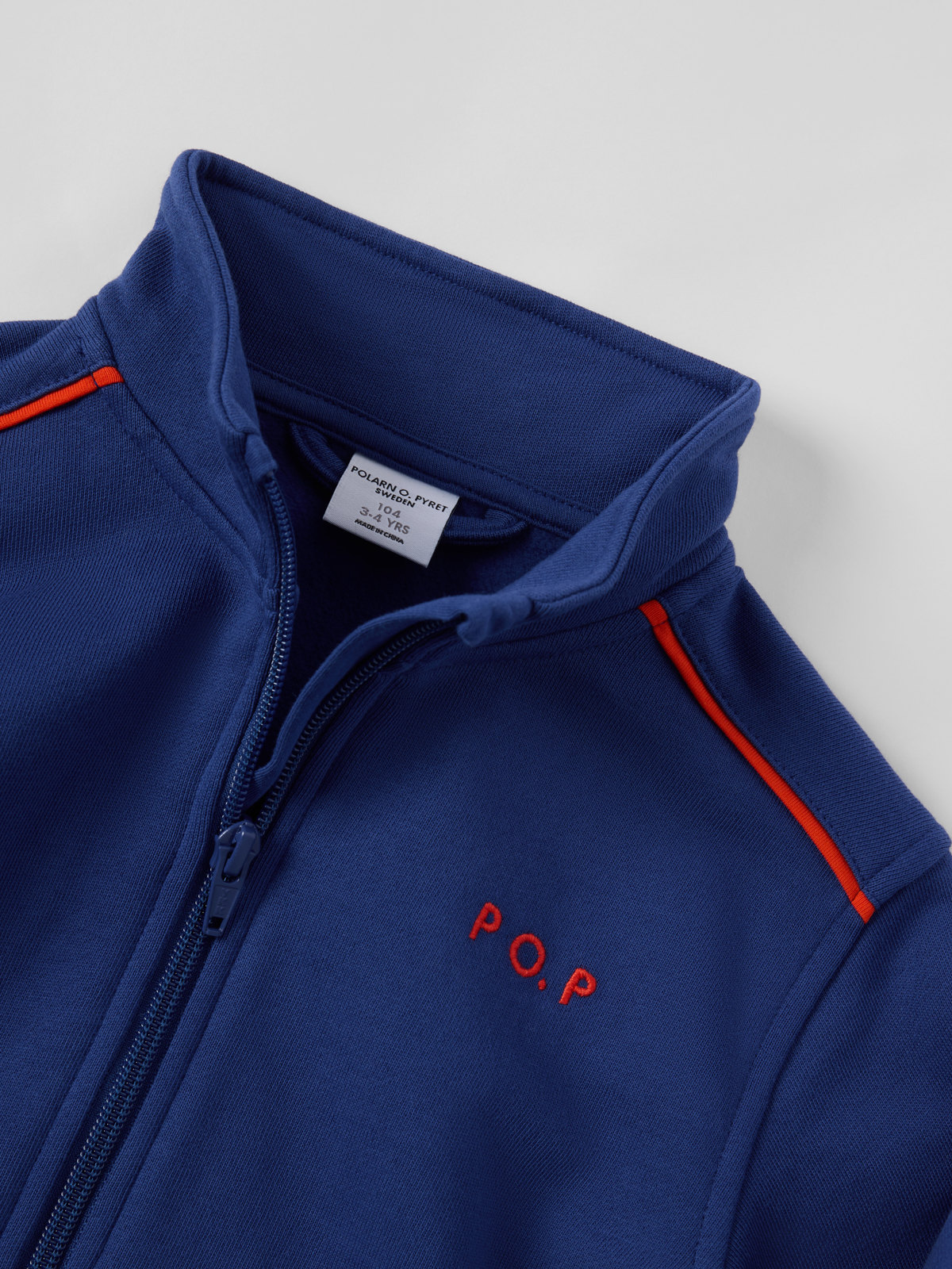 Jacka i mjuk sweatshirtskvalitet, tillverkad i 100 % ekologisk bomull med zip. Jackan har lång dragkedja som går upp lite i halsen och ribbad mudd i ärmslut och nederkant för skön passform. Tröjan har även en kontrastfärgad logga broderad framtill.