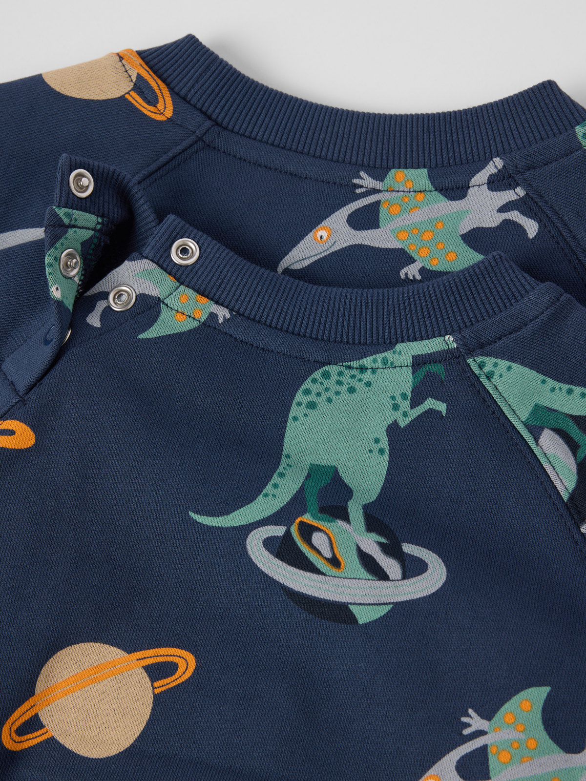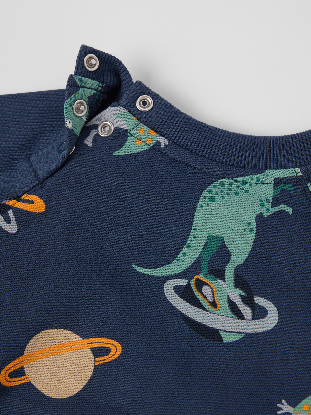 Storlekarna 86-92 har tryckknappar bak på ena axeln för att underlätta klädbyten.