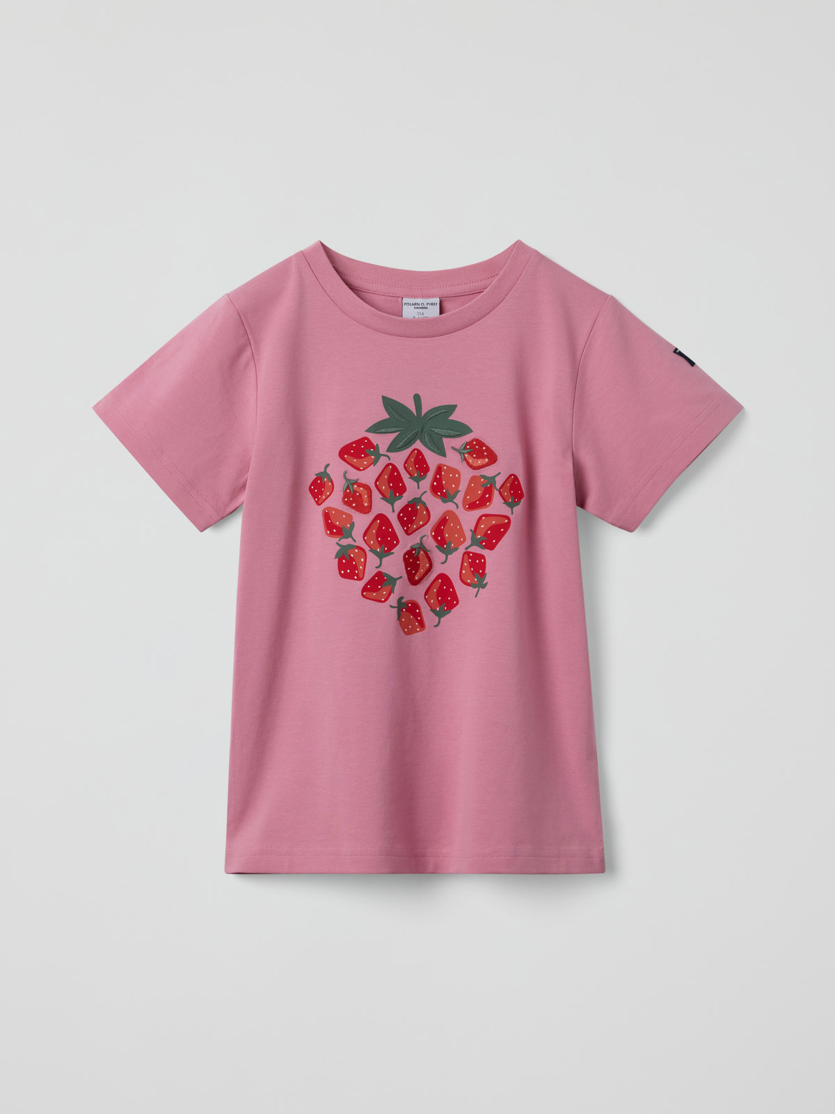 T-shirt i 100 % ekologisk bomull med lekfullt print med en stor jordgubbe på framstycket. Rolig att ha vid alla tillfällen! T-shirten finns i fler fäger och med flera olika prints som matchar fint med hela kollektionen. Hitta din favorit!