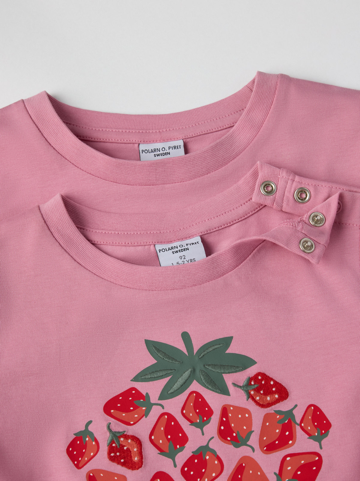 Storlekarna 86-92 har tryckknappar på ena axeln för att underlätta klädbyten.