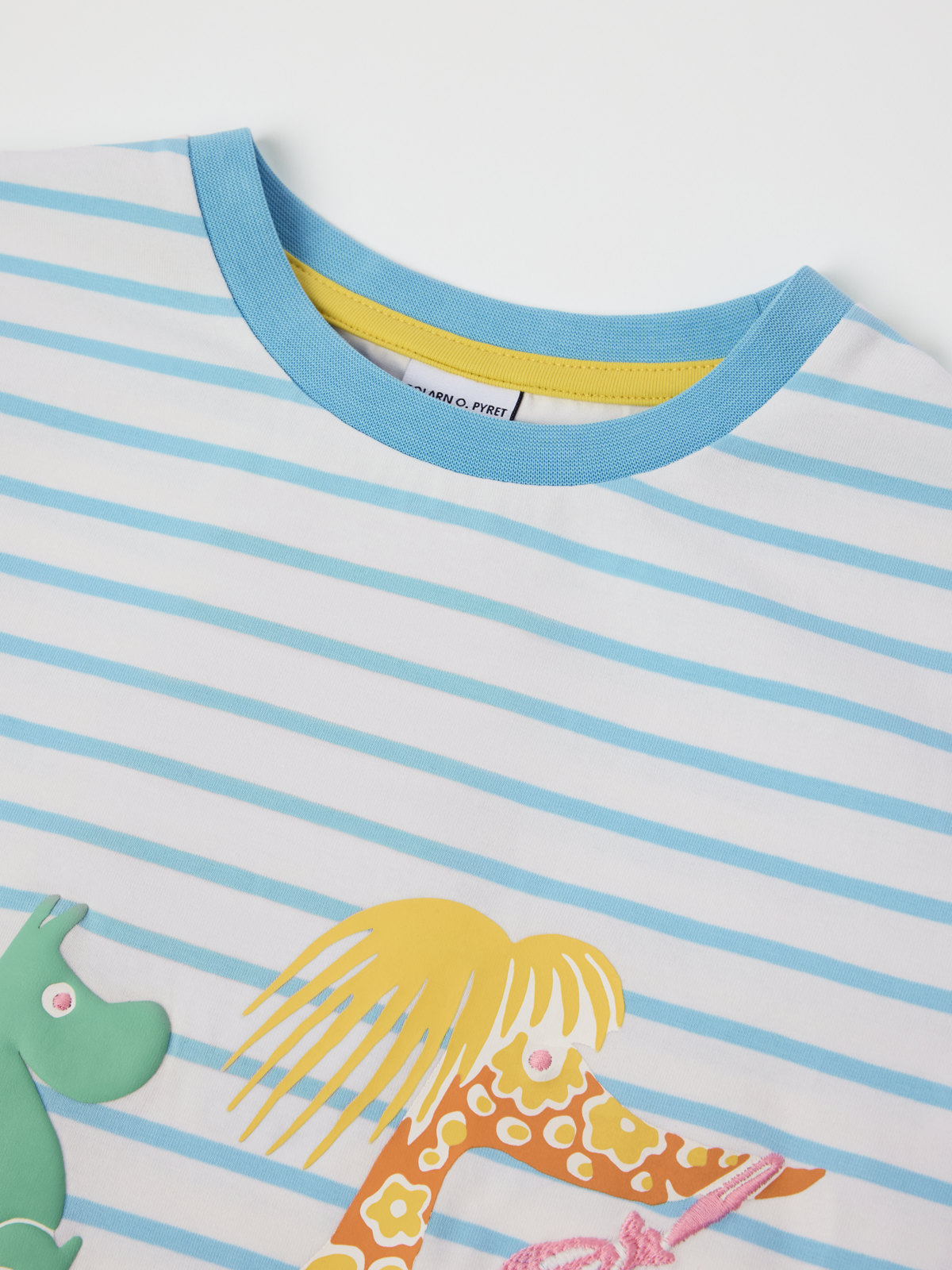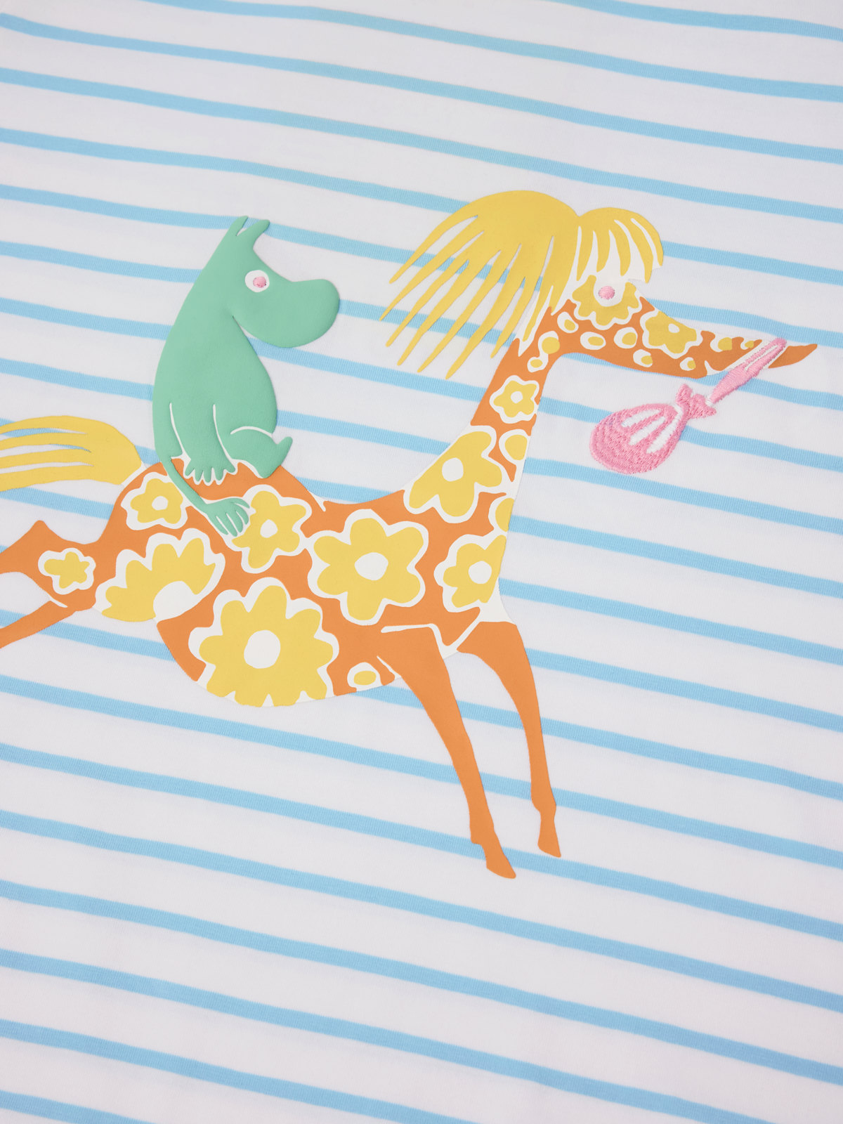 T-shirt i 100 % ekologisk bomull med illustrationer från Tove Janssons berättelser om mumintrollen. Perfekt att ha vid alla tillfällen! Plagget är en del av vår limiterade kollektion för att fira Mumins 80-årsjubileum. Exklusivt för jubileumsåret 2025 är att mumintrollen återigen får synas i färg – för första gången sedan 1956.