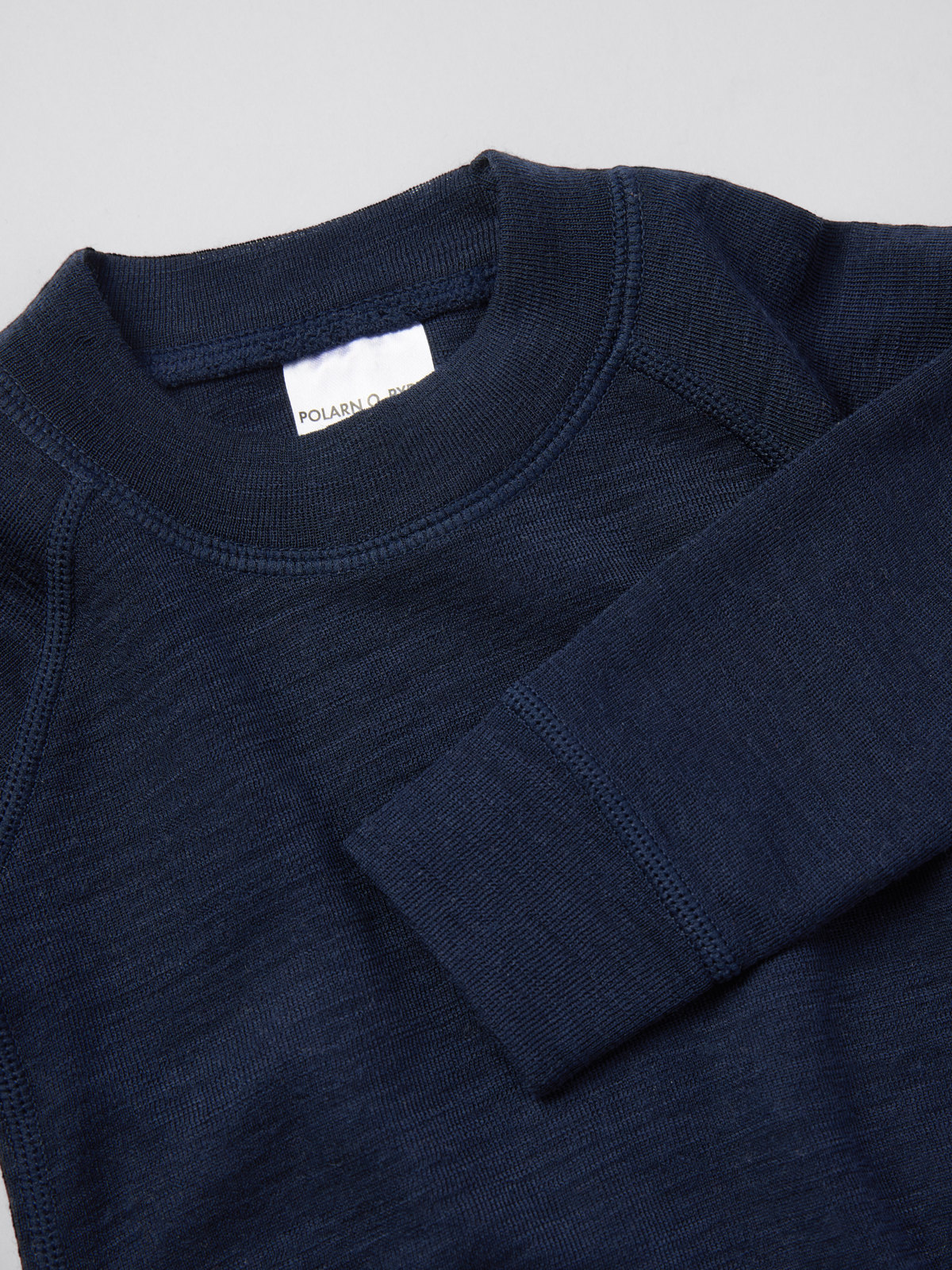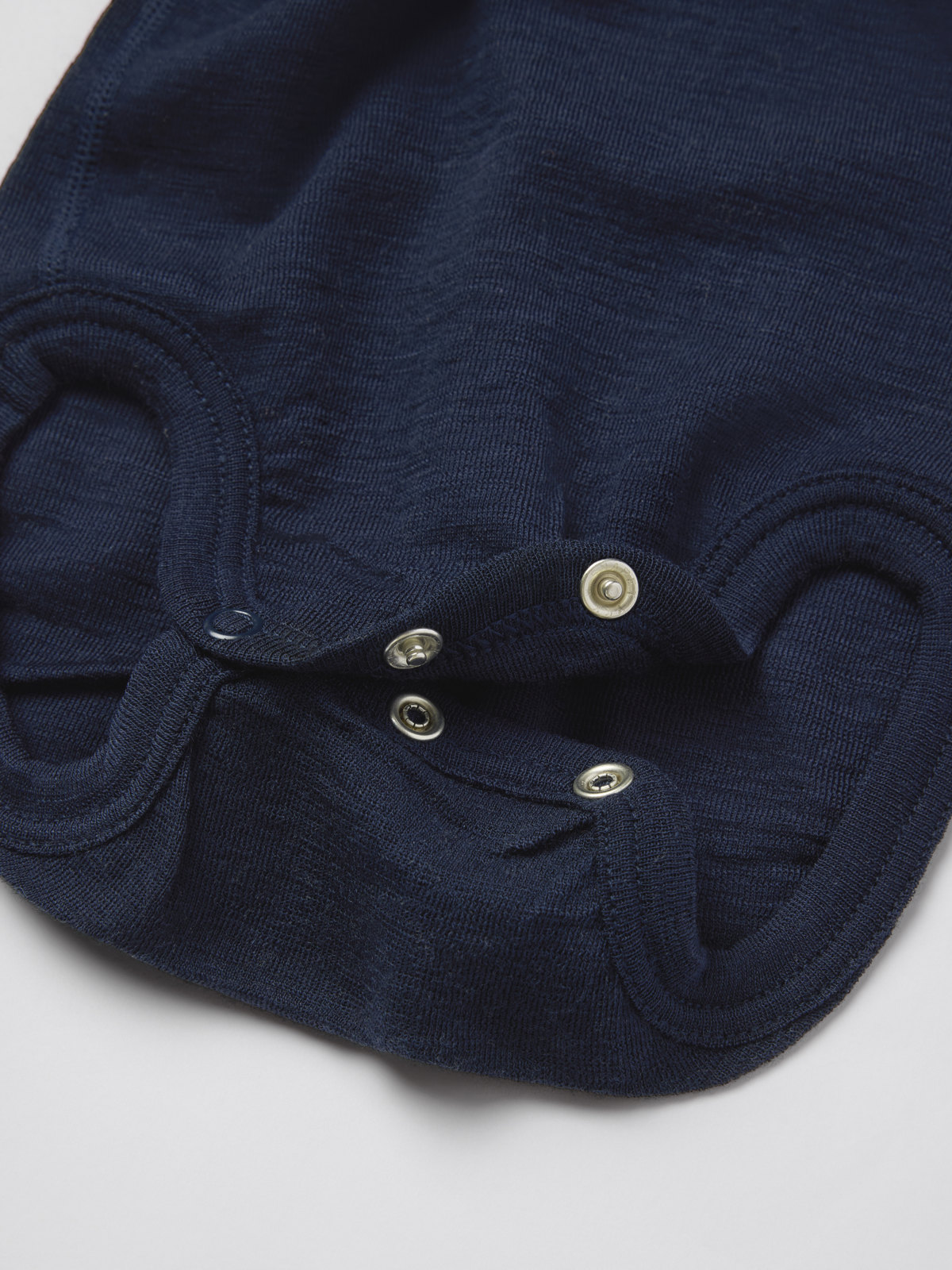 Långärmad body i värmande merinoull för baby. Ett perfekt förstalager under vinteroverallen! Merinoullen värmer även i blött tillstånd och hjälper till att reglera kroppstemperaturen. Bodyn är sydd med extra mjuka sömmar som inte skaver och har tryckknapparna i grenen för att underlätta kläd- och blöjbyten.