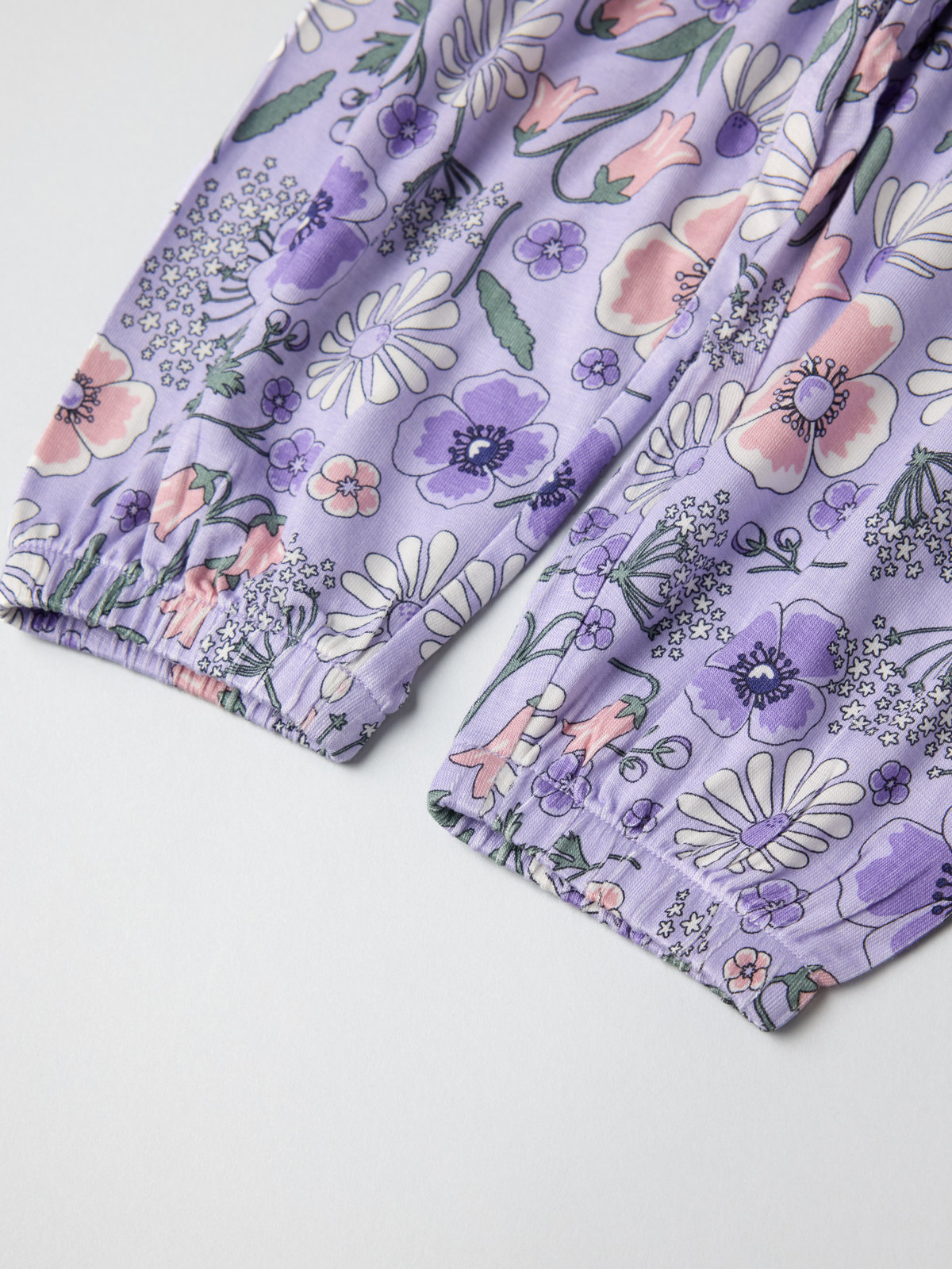 Blommig byxa tillverkad i tunn och sval trikå av Ecovero™ Viscose för baby – perfekt för varma dagar! Byxan har elastisk midja och benslut för skön passform.