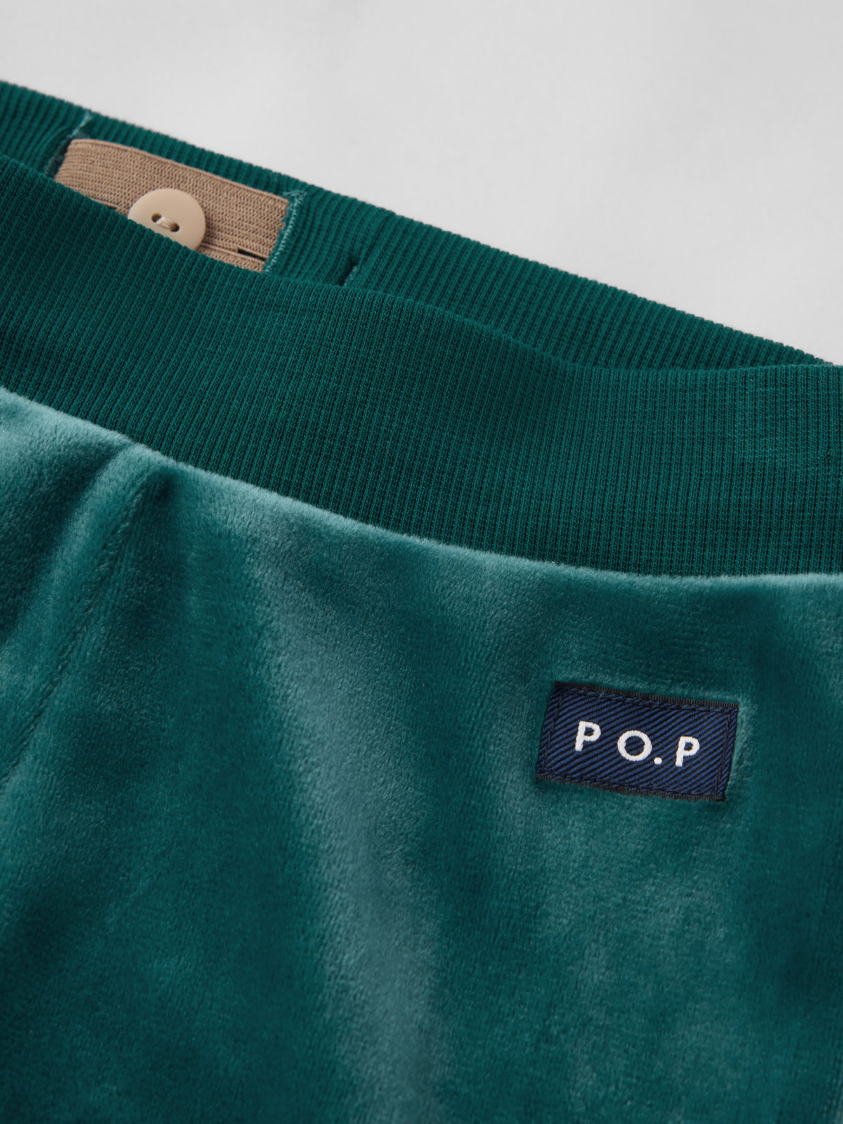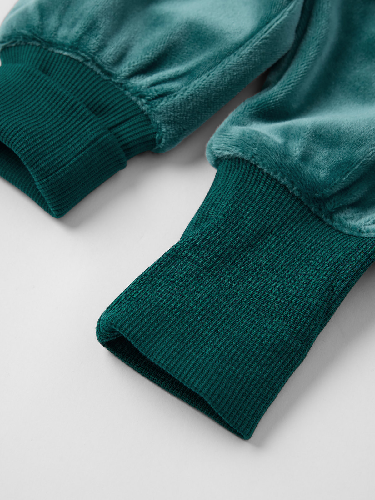 Mjuk och go velourbyxa tillverkad av återvunnen polyester – perfekt för små växande ben. Byxan har elastisk resår i midjan som går att justera med knapphålsresår. De extra långa muddarna i bensluten går att vika upp eller ned allt eftersom barnet växer.