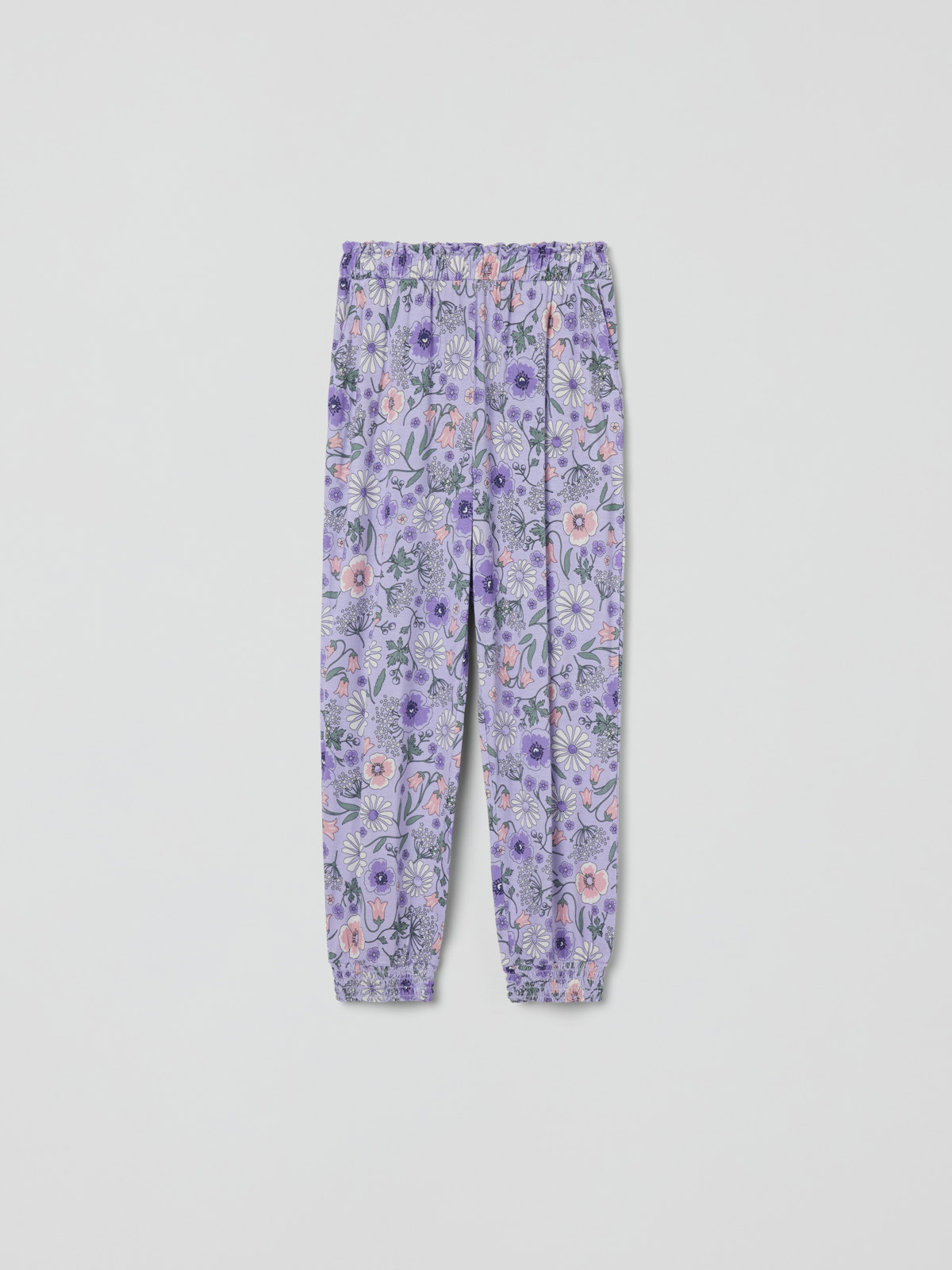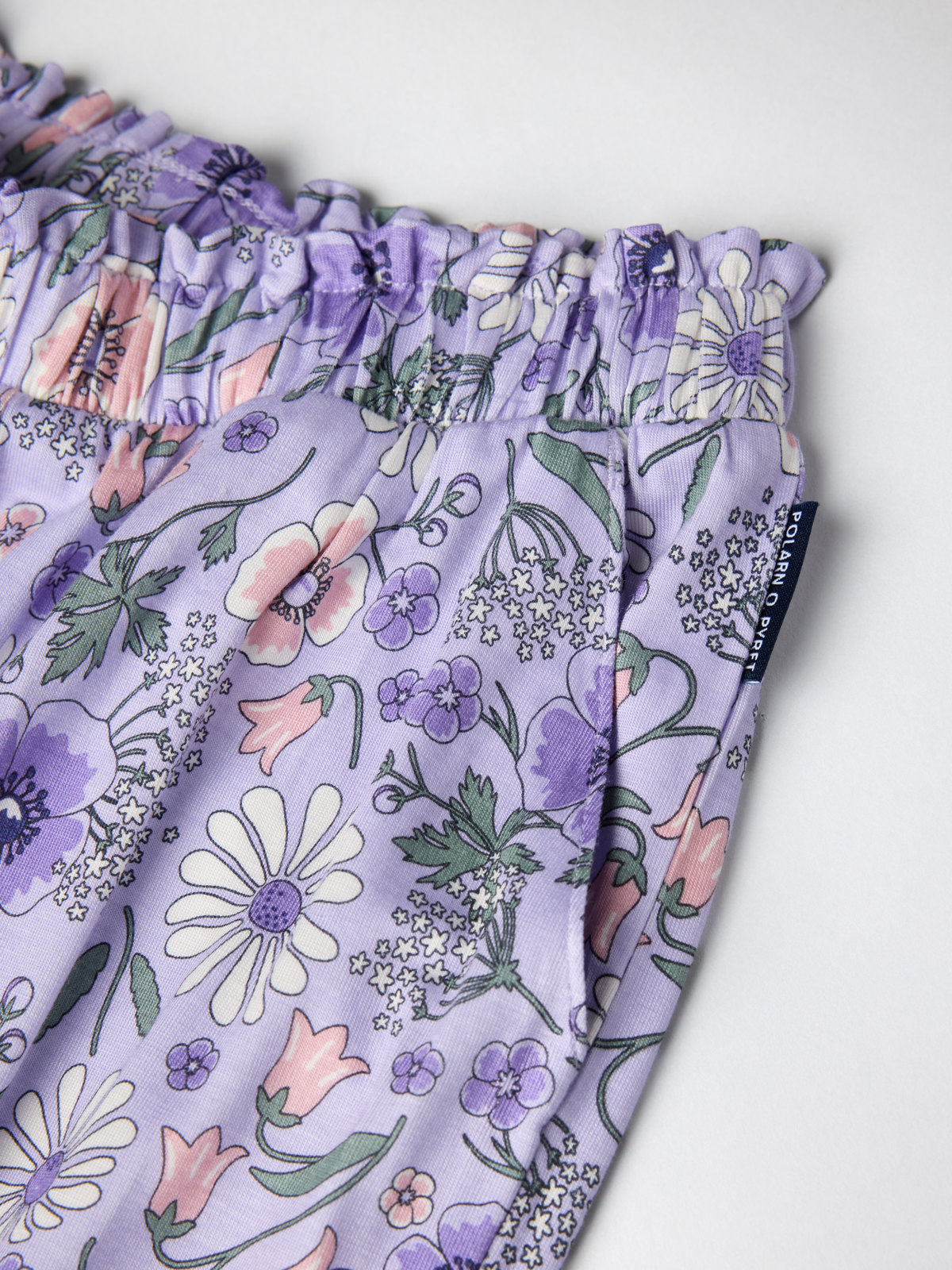 Blommig byxa tillverkad i tunn och sval trikå av Ecovero™ Viscose – perfekt för varma dagar! Byxan har två fickor fram samt elastisk midja och benslut för skön passform.