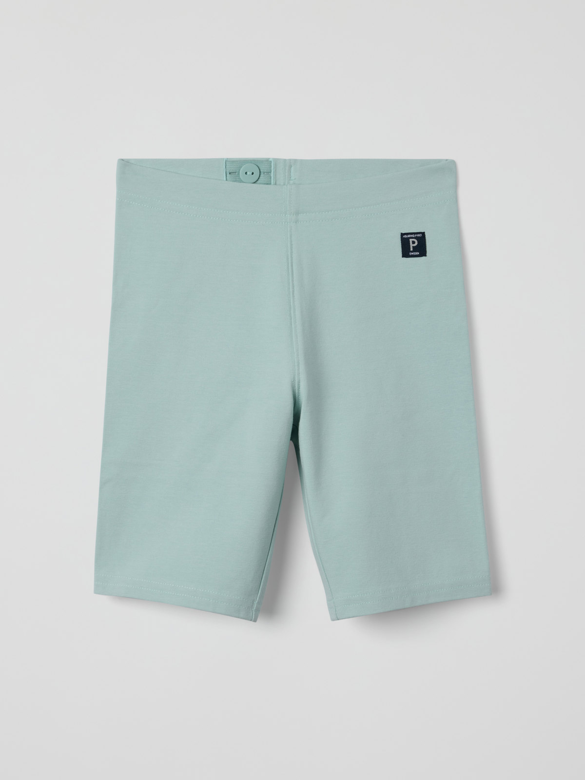 Enfärgad cykelbyxa i mjuk ekologisk bomull – de perfekta sommarshortsen! Midjan är elastisk och kan justeras på insidan med knapphålsresår. Shortsen finns i flera färger och matchar fint med hela kollektionen.