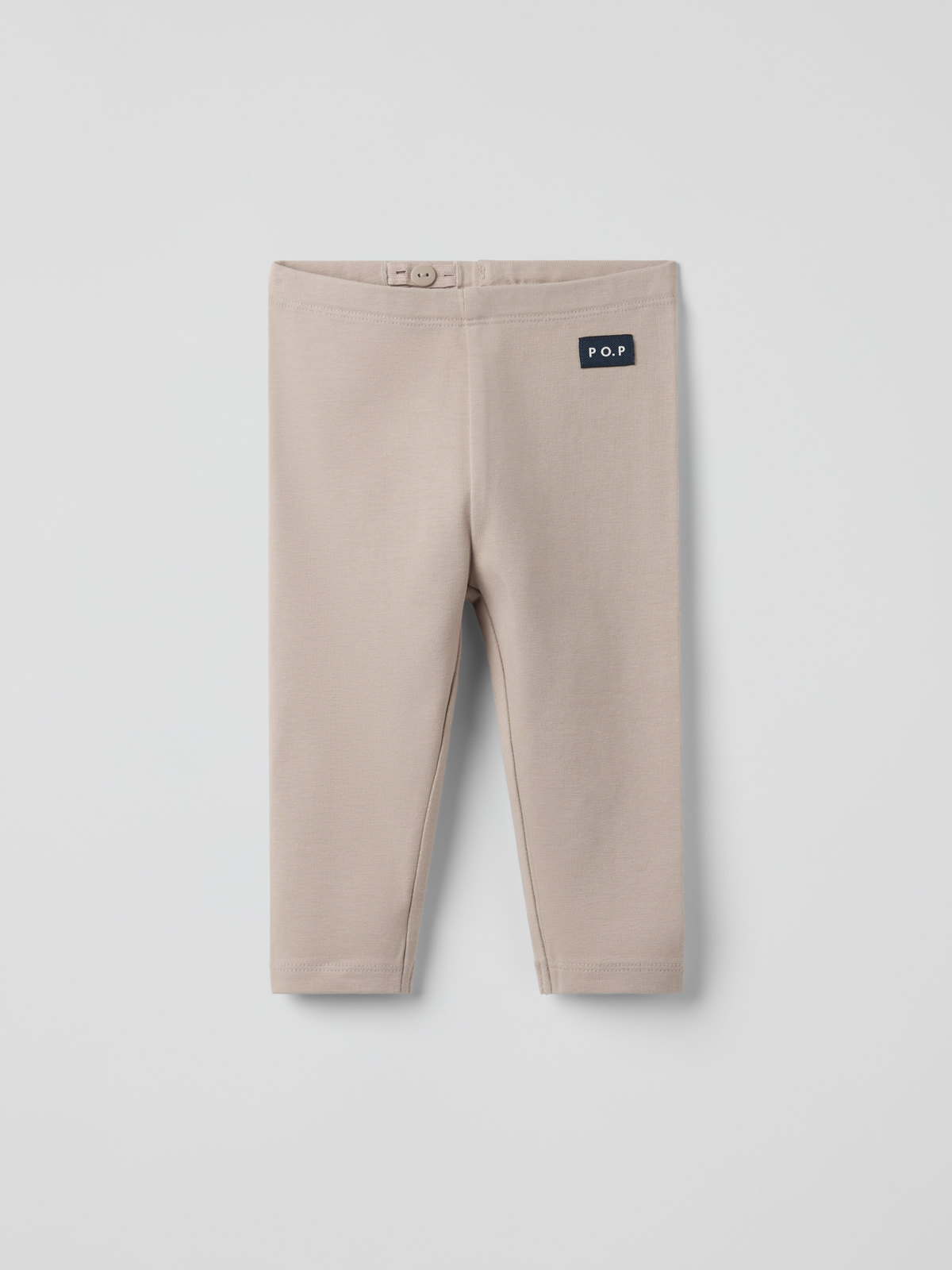 Våra klassiska leggings i mjuk ekologisk bomullstrikå – en av våra mest populära produkter! Midjan går att justera med knapphålsresår.