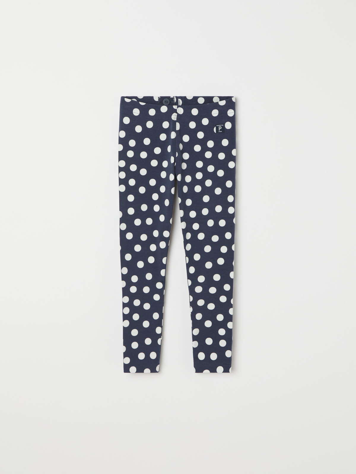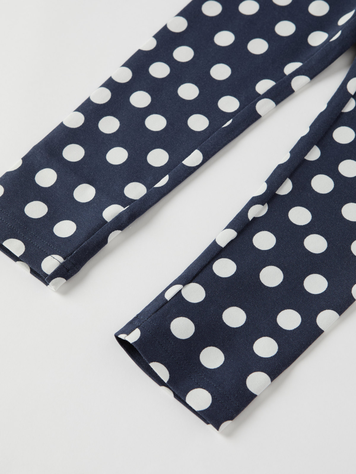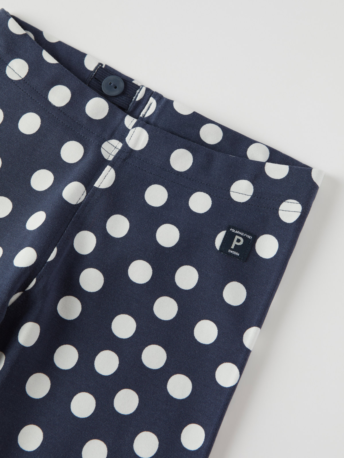 Leggingsen är prickiga och midjan går att justera med knapphålsresår.