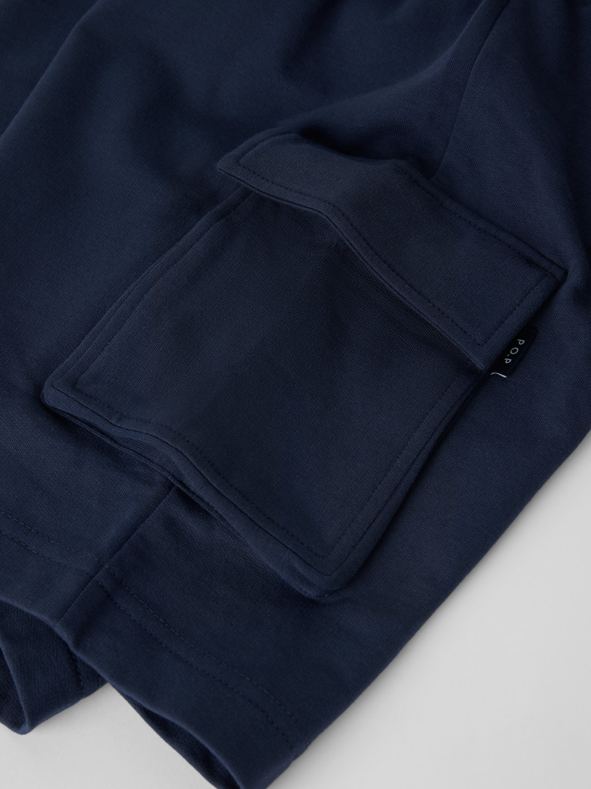 Cargoshorts med tunn sweatshirtkvalitet i ekologisk bomull – ett perfekt vardagsplagg i sommargarderoben! Shortsen har cargofickor och elastisk midja som kan justeras med knytband.