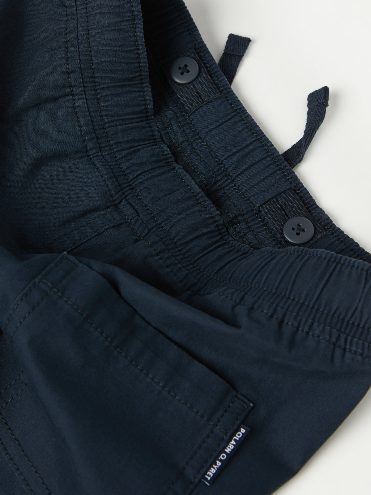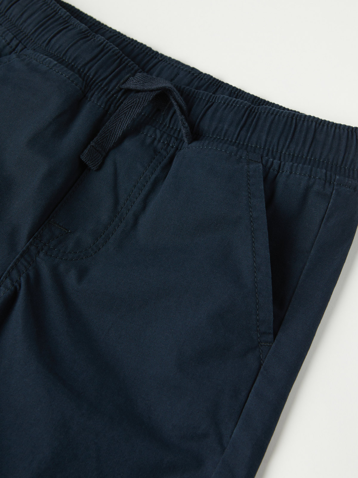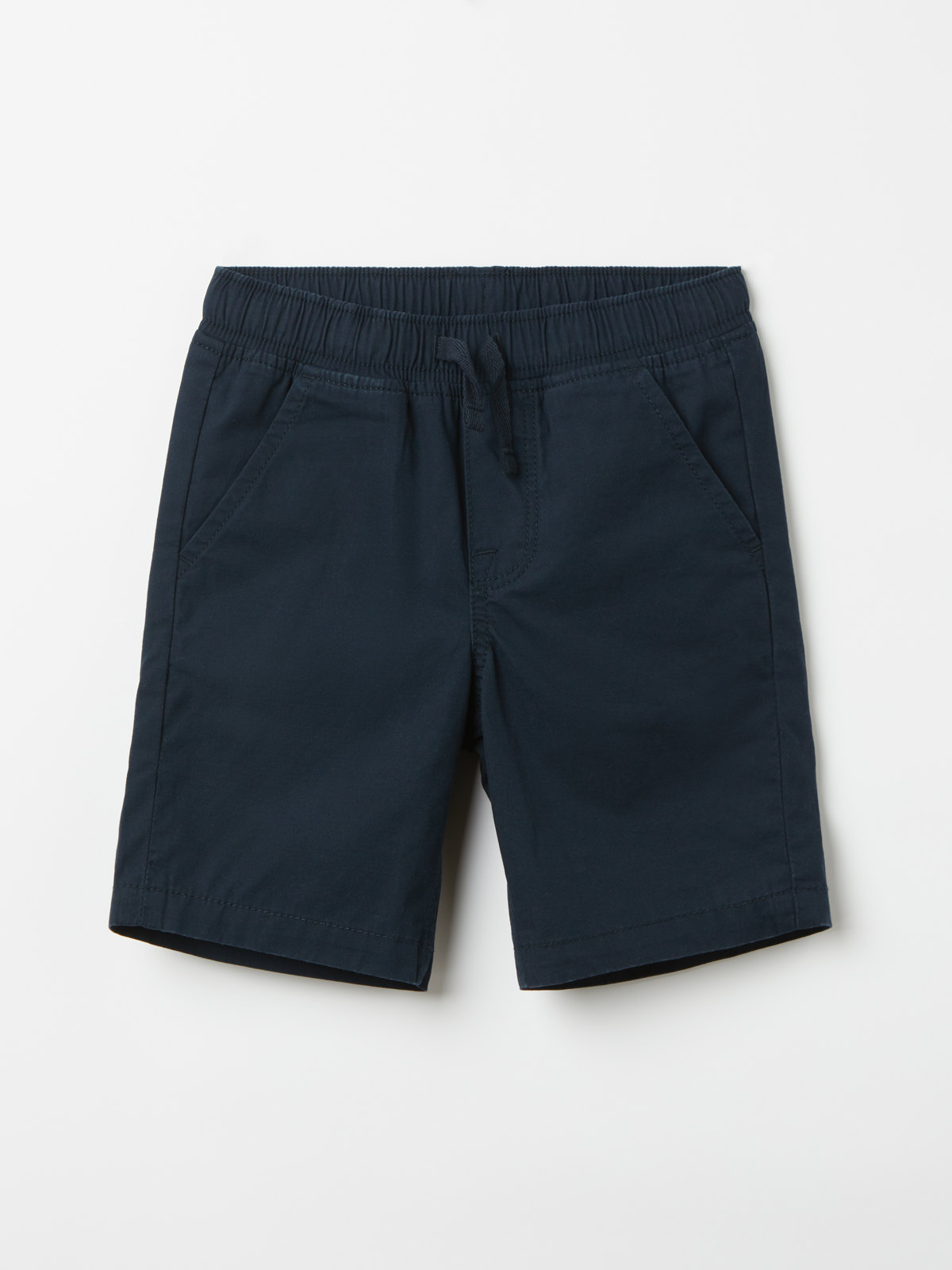 Enfärgade shorts i vävd ekologisk bomull – tunna och sköna både till vardag och fest. Shortsen har elastisk midja som går att justera med knytband, samt två fickor fram.