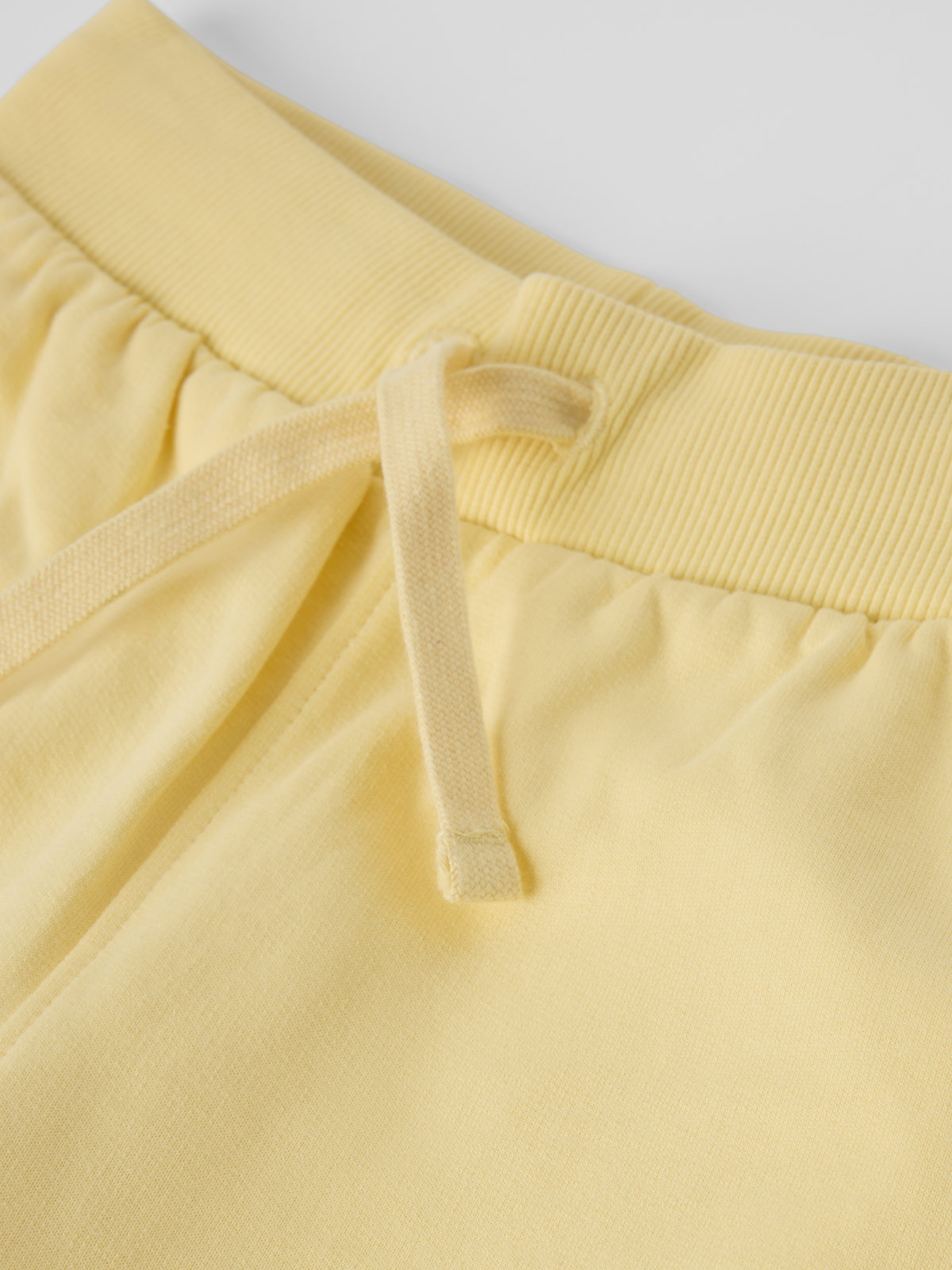 Enfärgade shorts i ekologisk bomul med mjuk sweatshirtkvalitet och borstad insida – ett måste i sommargarderoben! Midjan är elastisk och justeras med knytband.