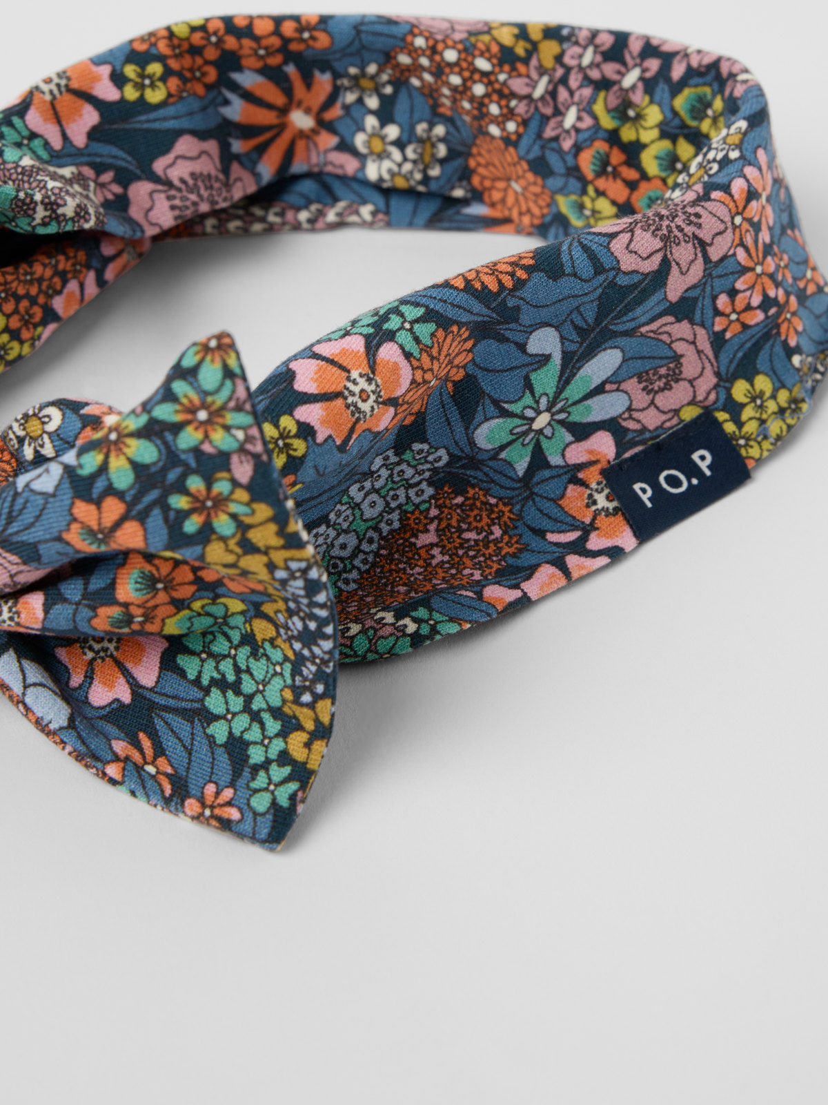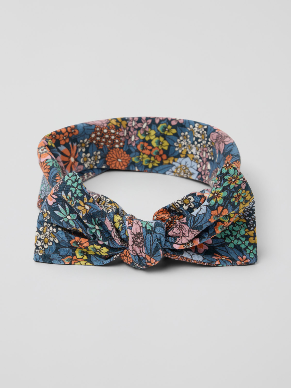 Elastiskt hårband i mjuk bomullstrikå – en del av vårt exklusiva designsamarbete med Liberty Fabrics. Hårbandet är helmönstrat med ett av Liberty Fabrics ikoniska blomprints och finns i en begränsad upplaga. Det är prytt med rosett fram.
