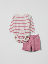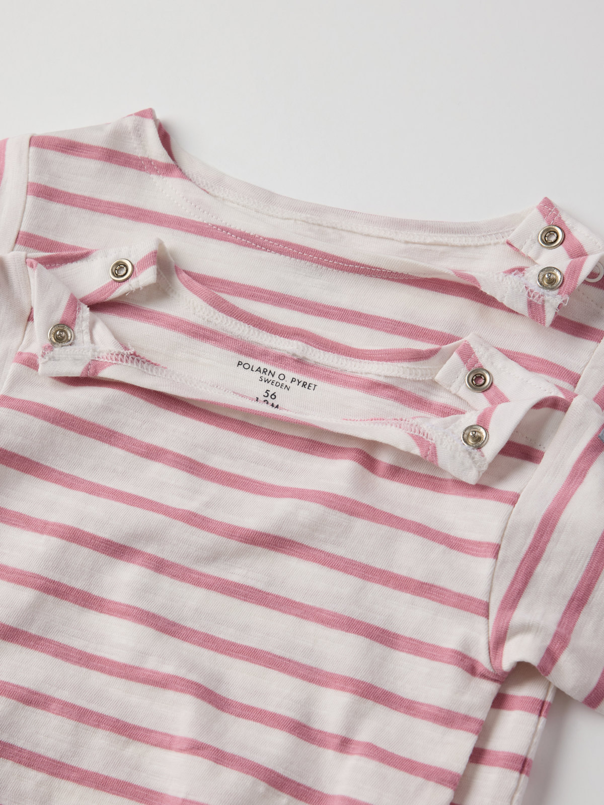 Set med långärmad body och shorts i 100 % tunn ekologisk bomull för baby – perfekt för varma dagar, då det skyddar lätt mot solen och är svalt och skönt. Bodyn har tryckknappar på båda axlarna samt i grenen för att underlätta klädbyten. Shortsen har elastisk midja för skön passform.