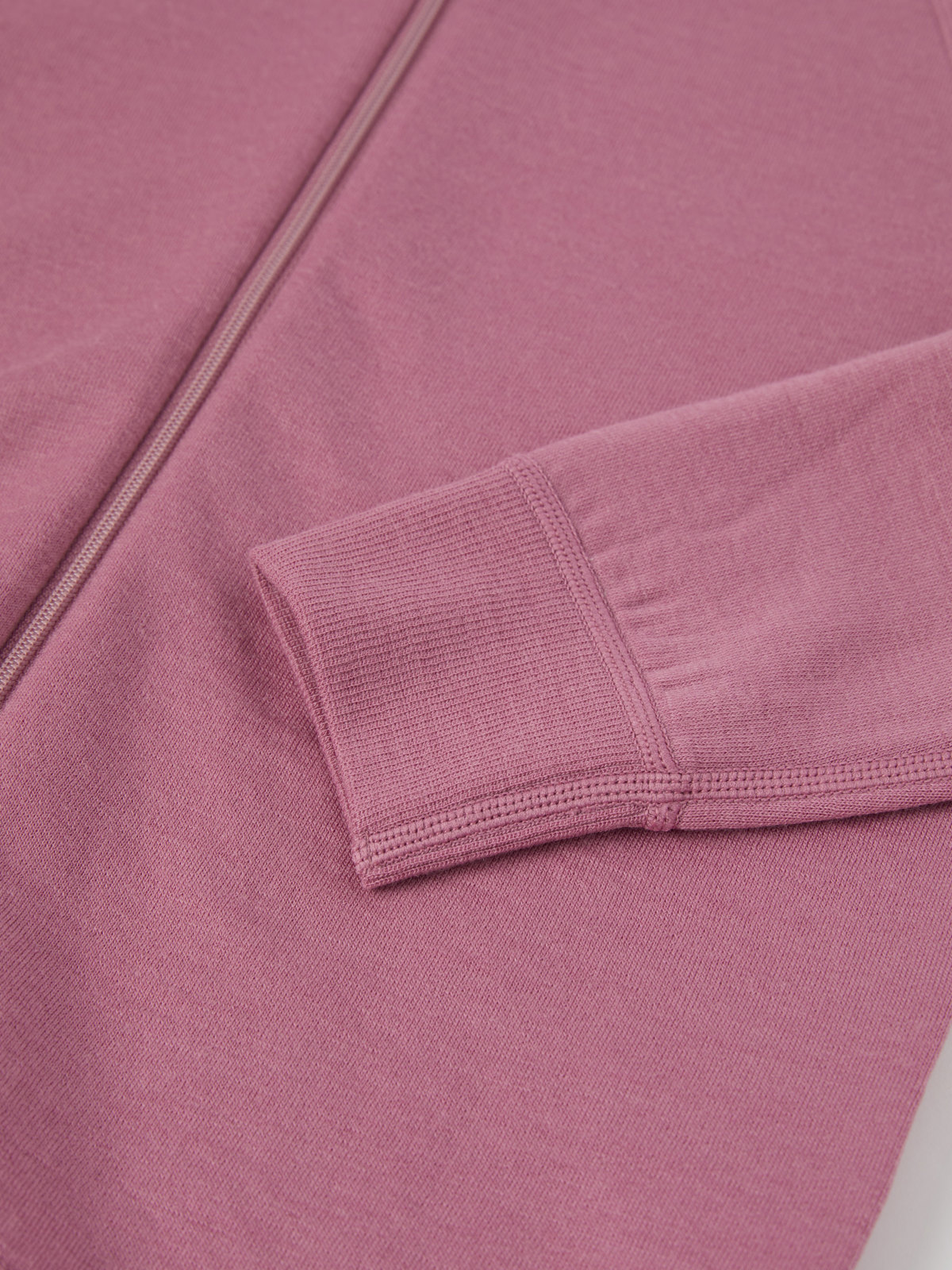 Tröjan är tillverkad av merinoull som effektivt suger upp fukt och hjälper till att reglera kroppstemperaturen. Frottén håller luften intill kroppen som ett värmande lager, och ullen i sig håller värmen samtidigt som den andas.