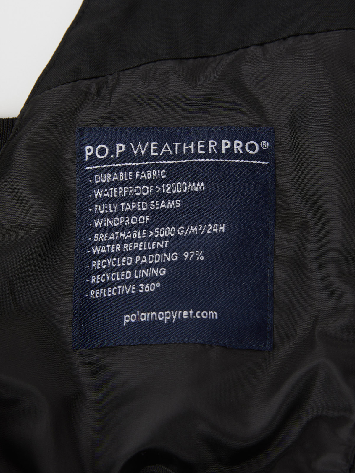 Ytterkläder märkta PO.P WeatherPro® uppfyller alla våra krav för funktionsytterplagg, oavsett om det gäller slitstyrka, vattentäthet, andningsförmåga eller barnsäkerhet.