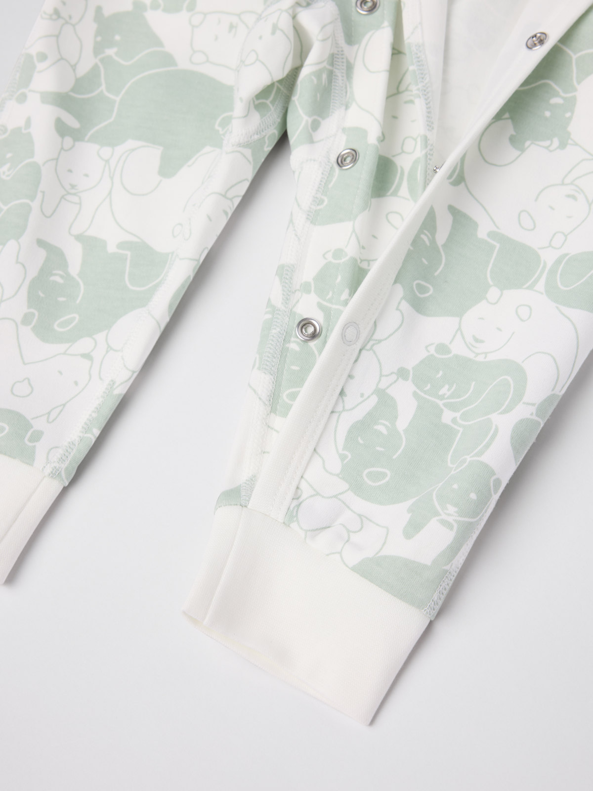 Mjuk och skön omlottoverall i 100 % ekologisk bomull – perfekt för hemmamyset! Overallen är helmönstrad med ekkvistar och sydd med extra mjuka, platta sömmar som är skonsamma mot känslig hud. Muddarna i ärm- och benslut är nedvikbara. I ärmsluten finns också övervikbart tyg som skyddar små händer från kyla och riv. Under ärmen har overallen ett fint band som går att knyta i en rosett.