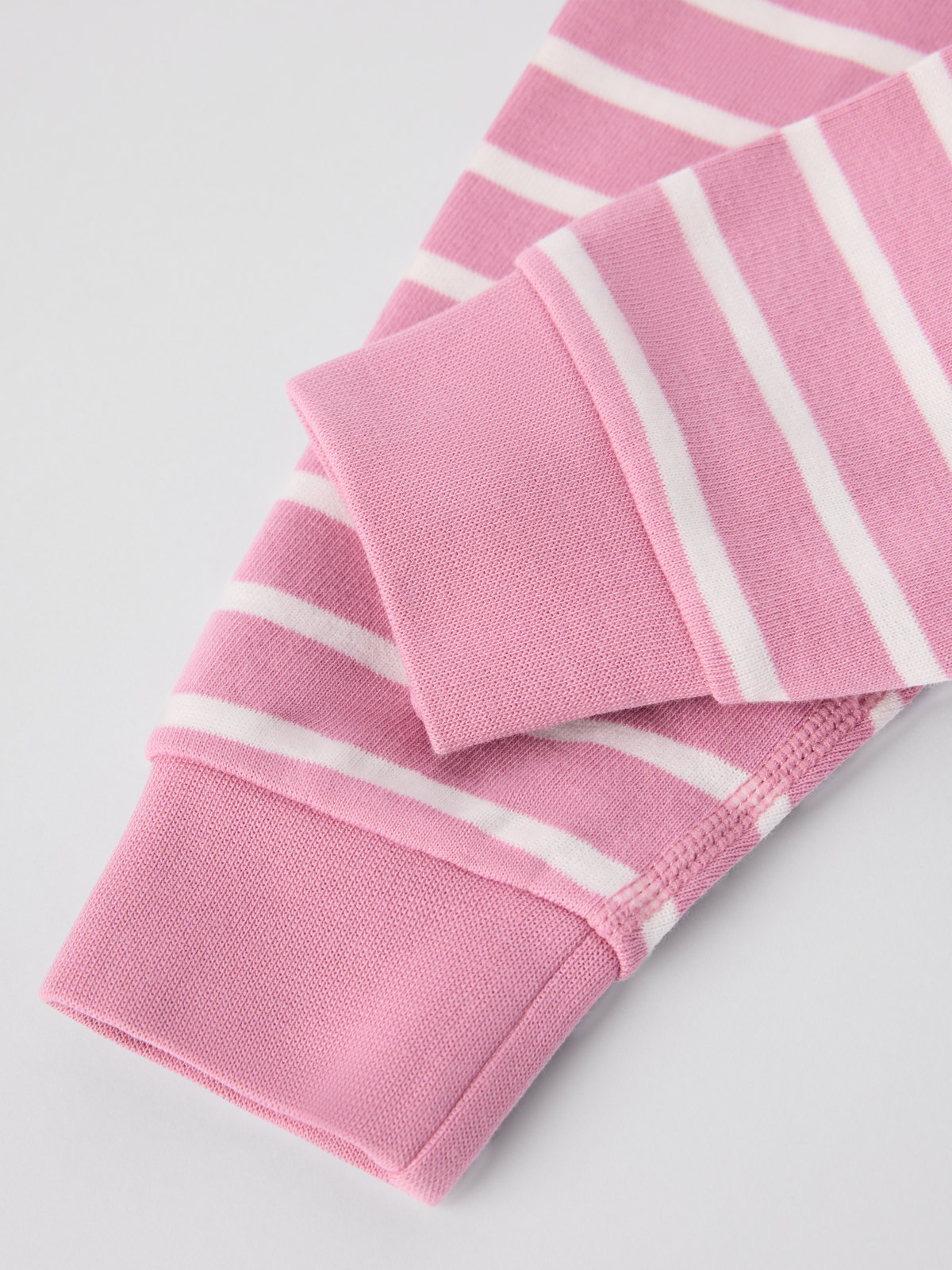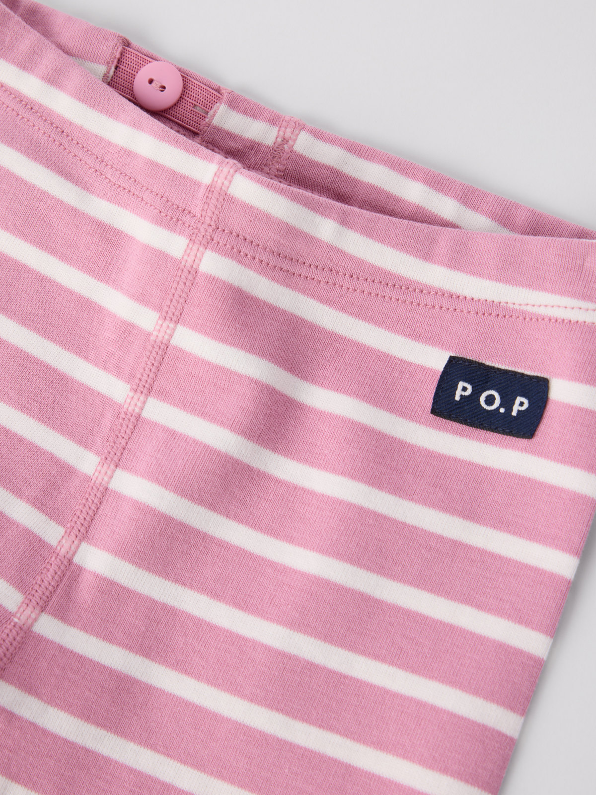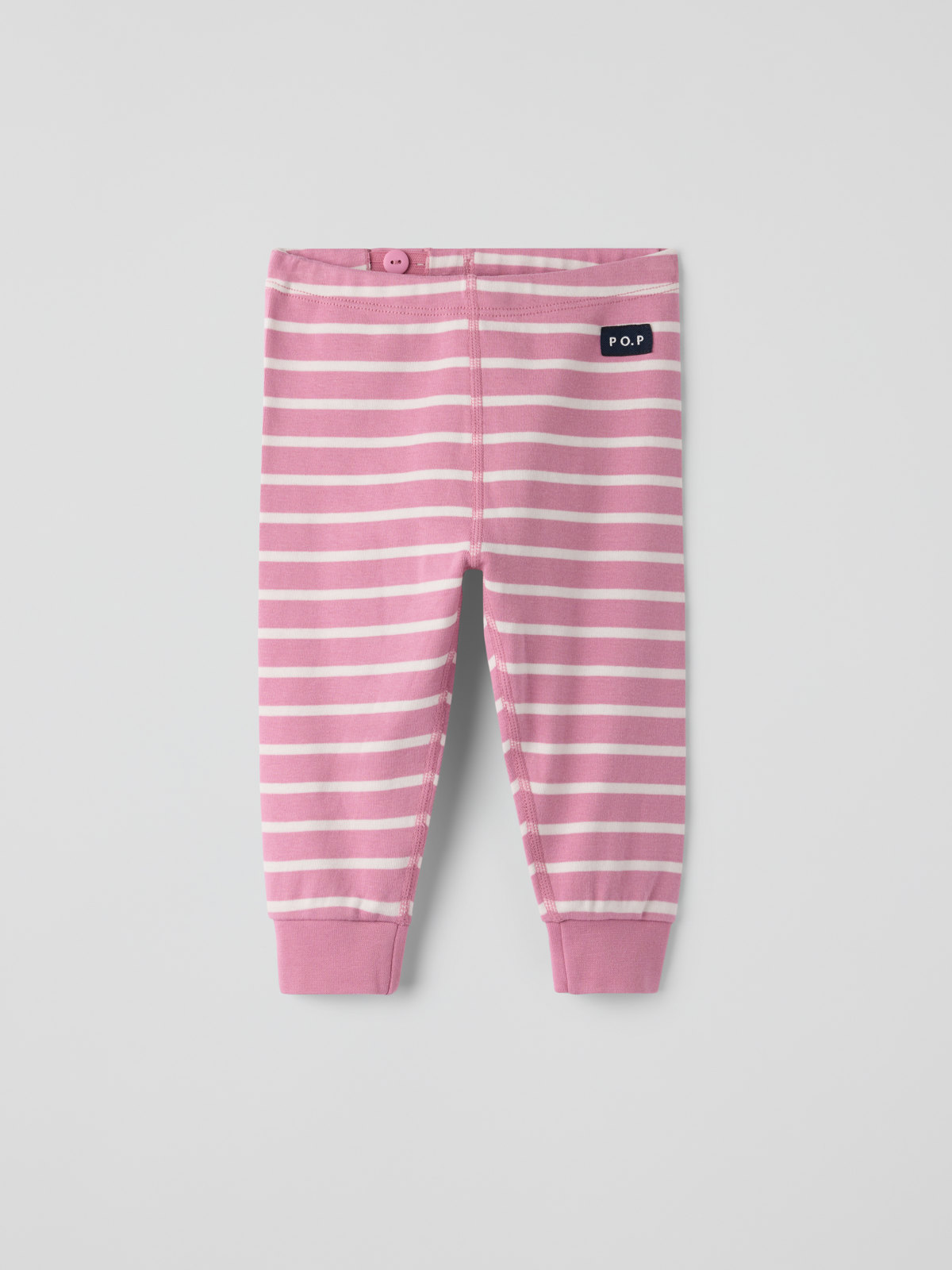 Ribbad trikåbyxa i mjuk ekologisk bomull. Ett perfekt basplagg som passar både hemma och på förskolan! Byxan har vår klassiska rand och elastisk midja som går att justera med knapphålsresår. Den har även mjuk mudd vid bensluten.