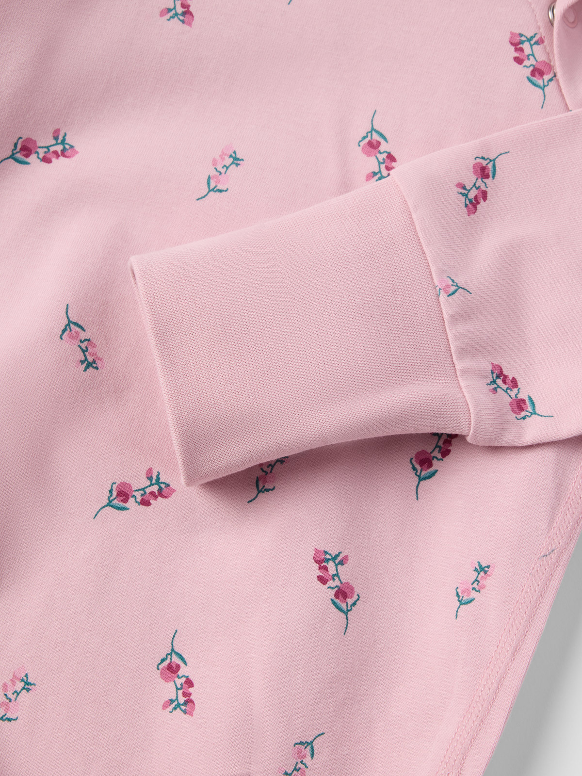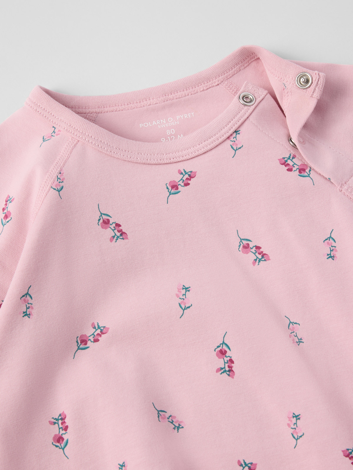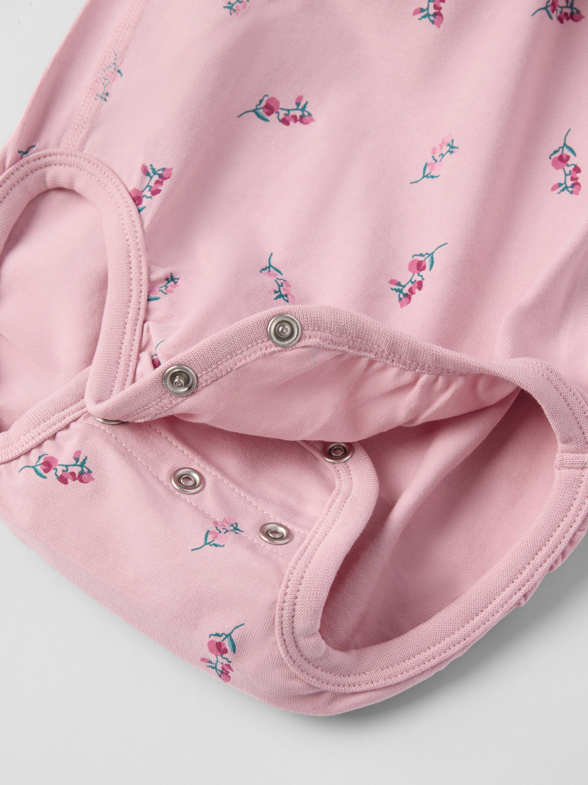 Förlängningsbar body i 100 % ekologisk bomull. Tack vare den smarta lösningen med en extra rad tryckknappar i grenen och nedvikbar mudd vid ärmsluten kan bodyn växa tillsammans med bebisen!