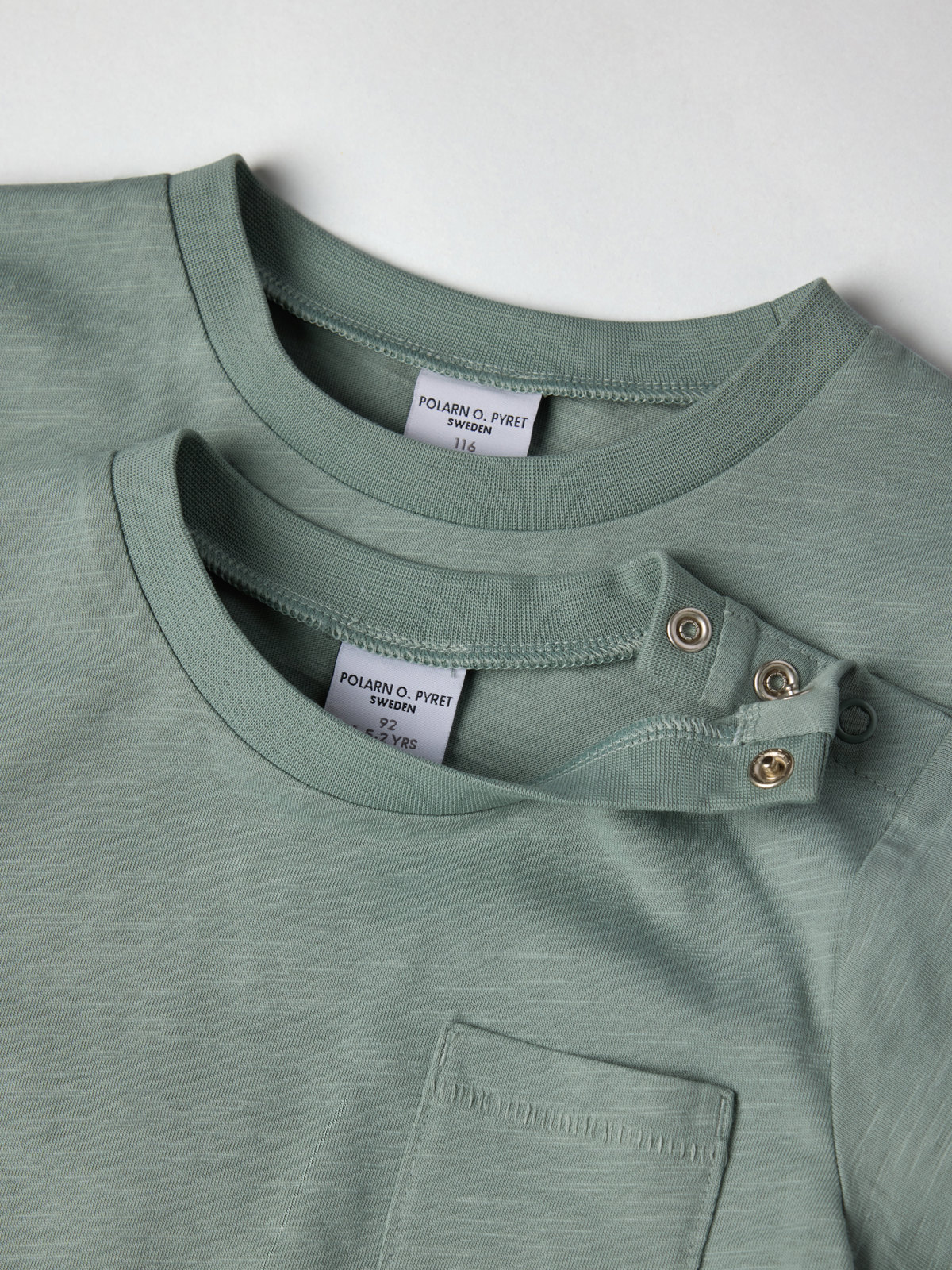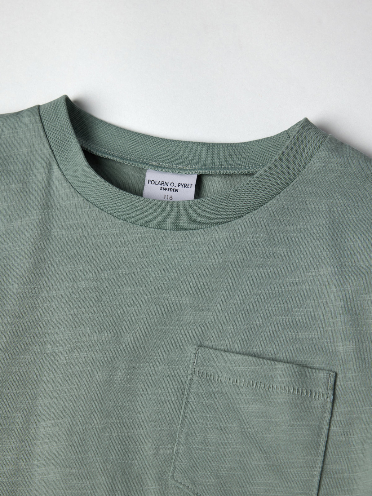 Enfärgad t-shirt i 100 % ekologisk bomull – perfekt att ha vid alla tillfällen! T-shirten har en liten bröstficka och finns i fler färger som matchar snyggt med hela kollektionen.