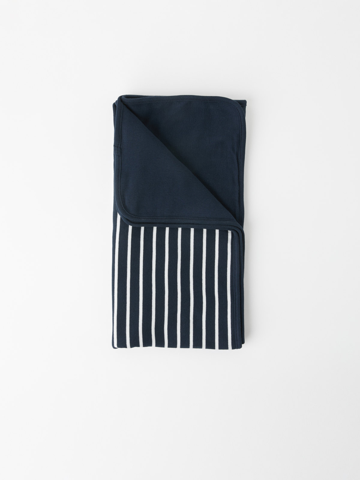 Filt i ekologisk bomull och i Polarn O. Pyret-randen. Enfärgad på en sida. Mått: 84 x 84 cm.