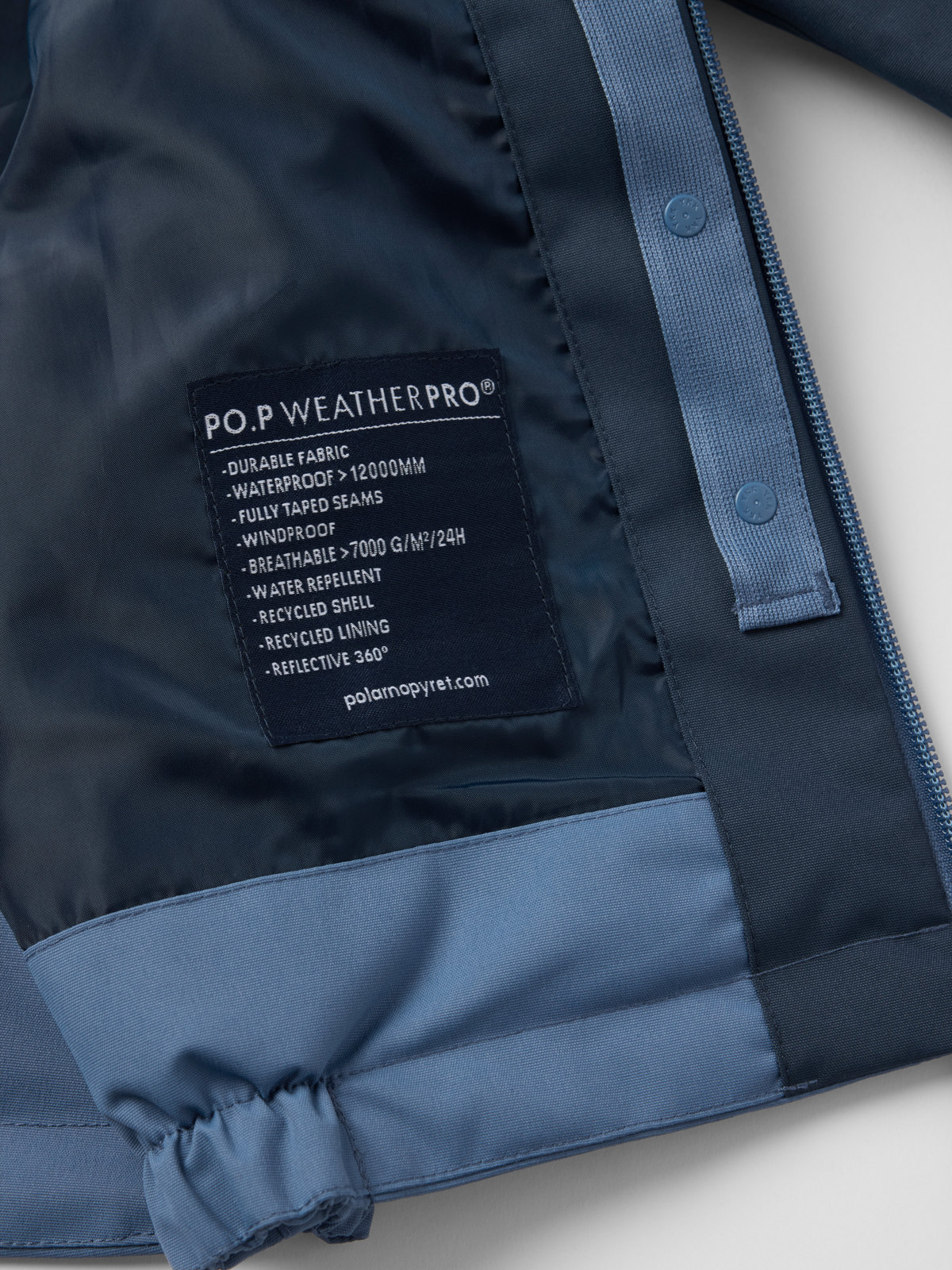 Ytterkläder märkta PO.P WeatherPro® uppfyller alla våra krav för funktionsytterplagg, oavsett om det gäller slitstyrka, vattentäthet, andningsförmåga eller barnsäkerhet.