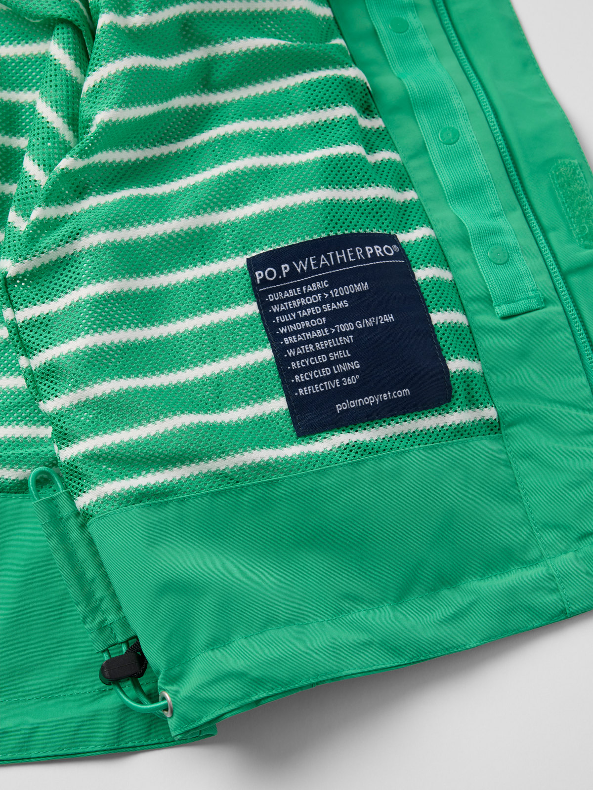 Ytterkläder märkta PO.P WeatherPro® uppfyller alla våra krav för funktionsytterplagg, oavsett om det gäller slitstyrka, vattentäthet, andningsförmåga eller barnsäkerhet.