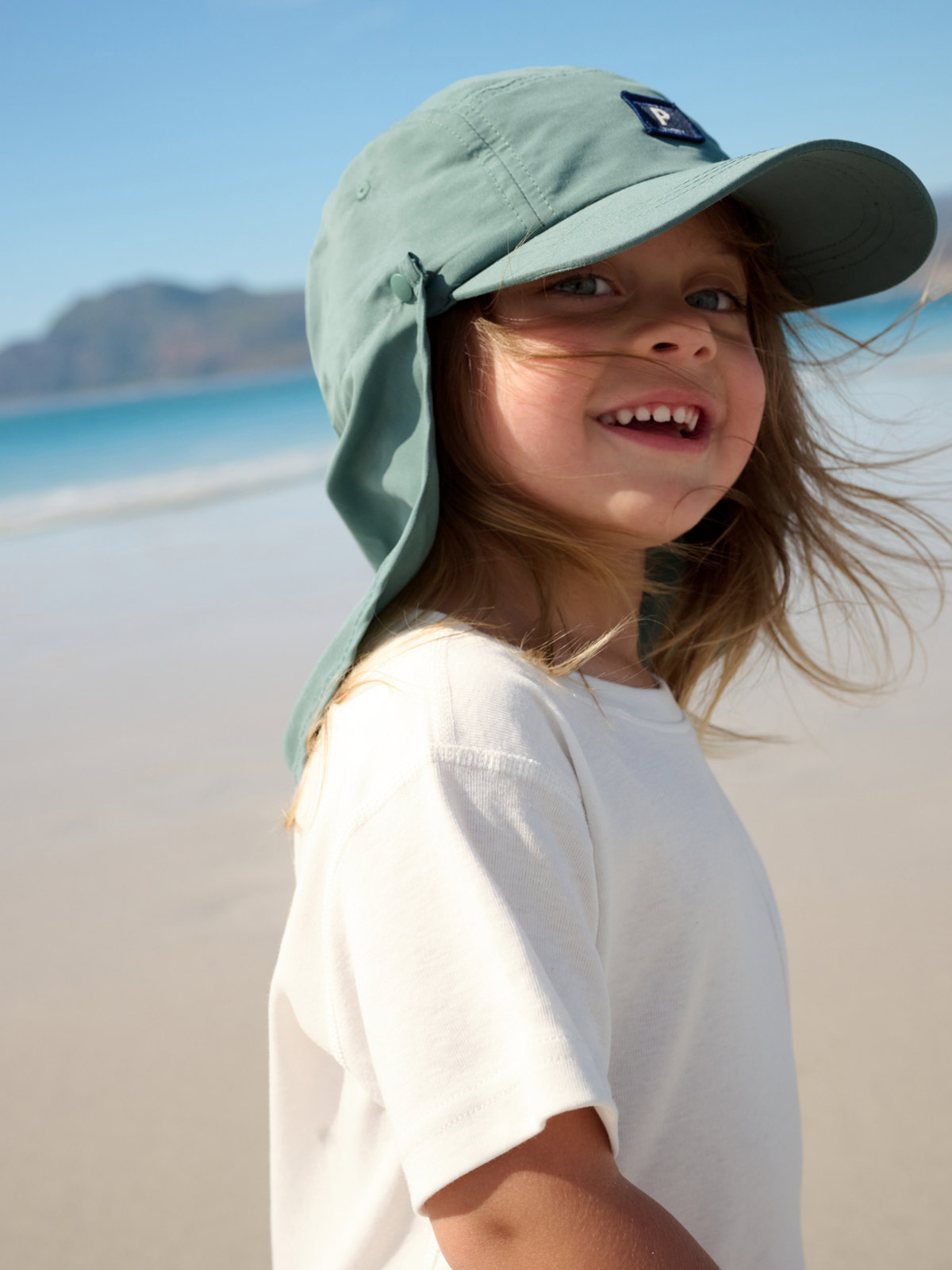 Keps med UV-skydd UPF 50 i återvunnen polyester med avtagbart nacktyg – perfekt för soliga utflykter!
