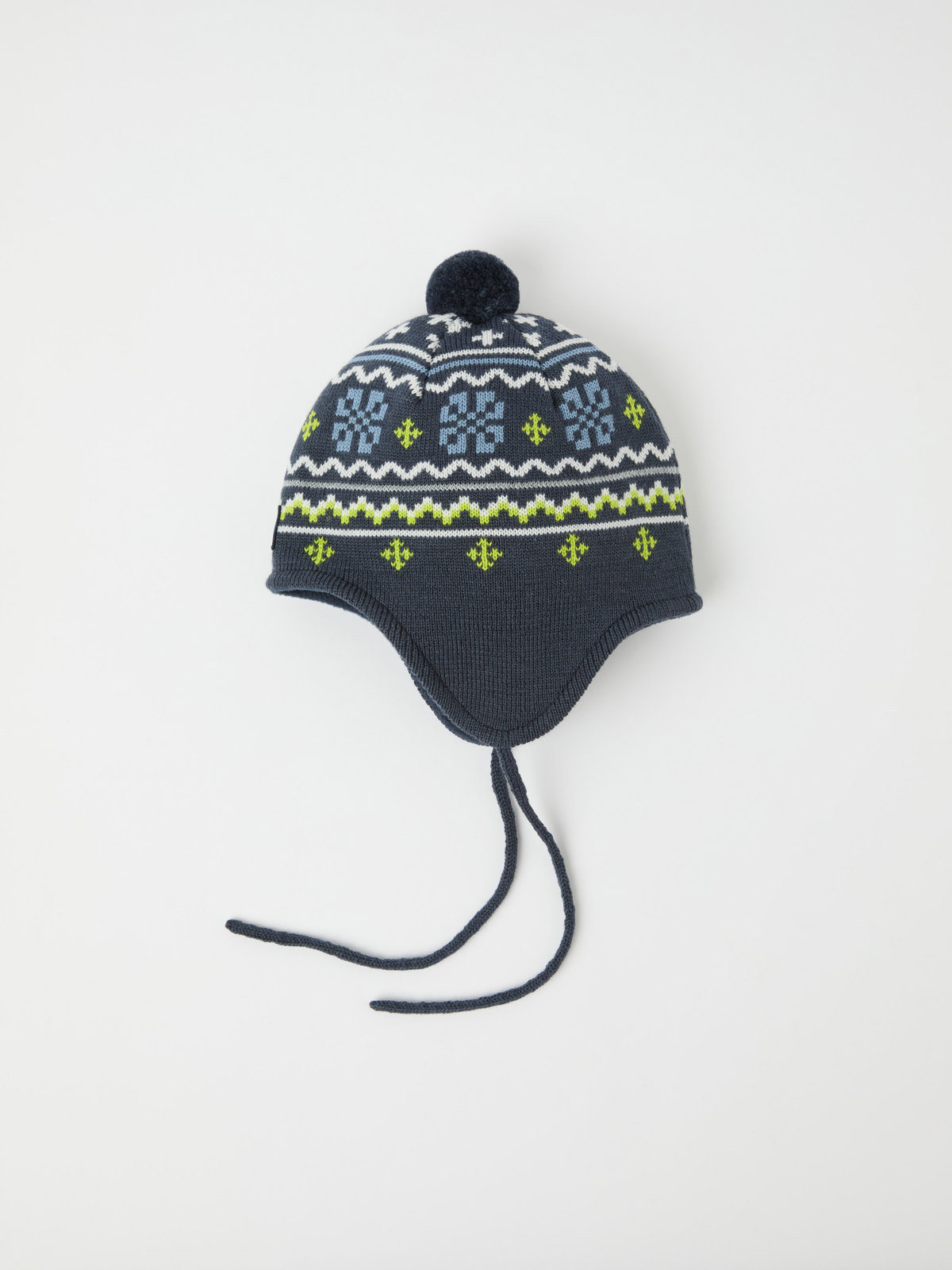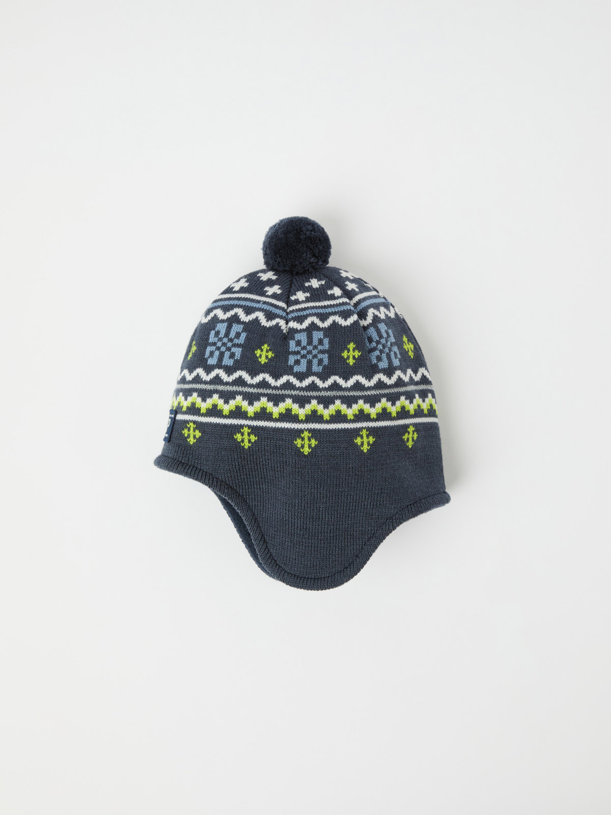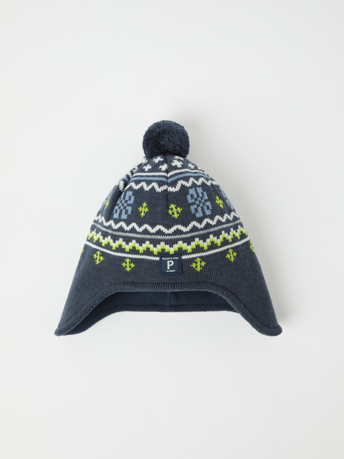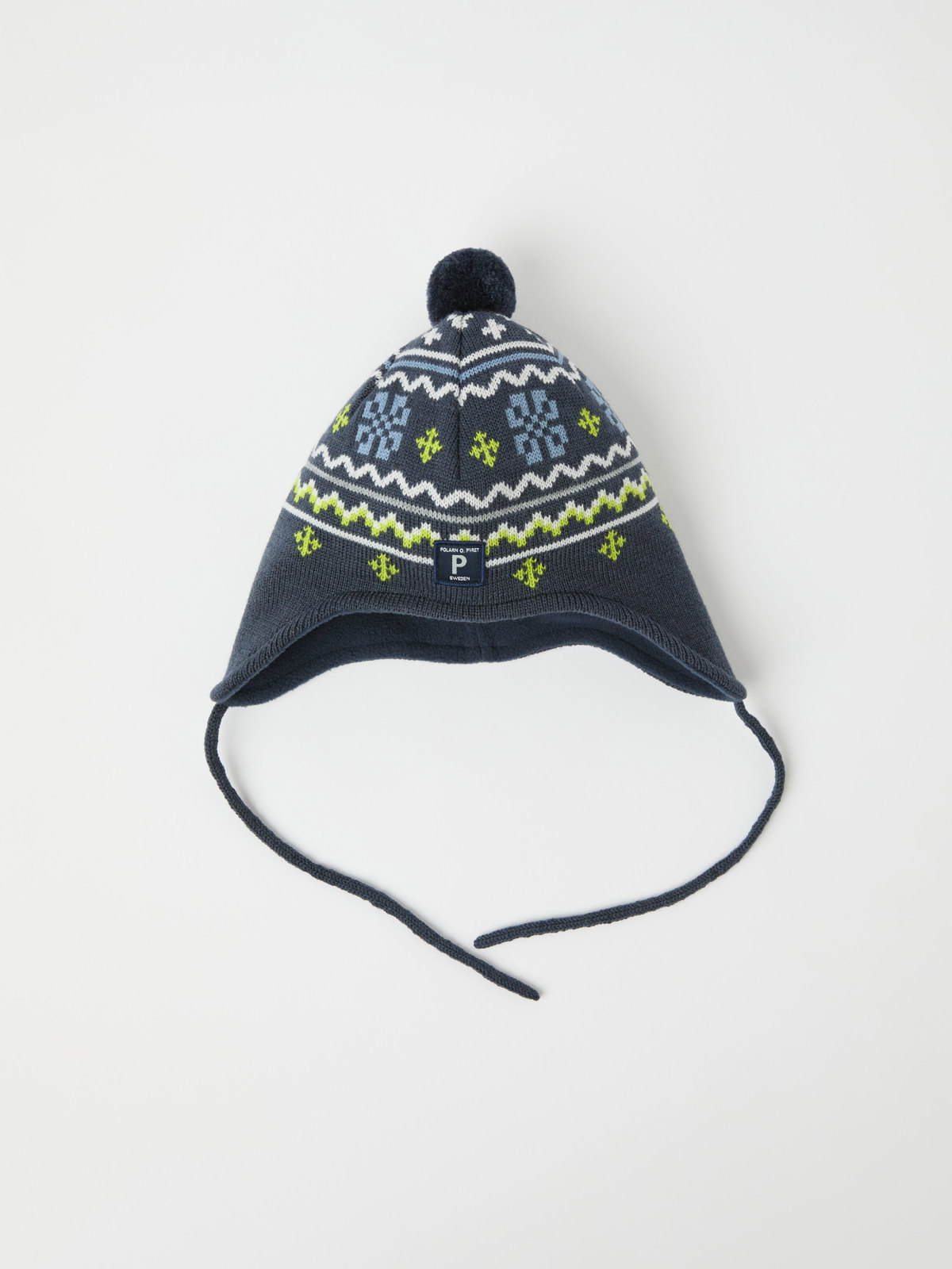 Vindtät jaquardmönstrad hjälmmössa i värmande ullmix med fin pompom. Mössan är fodrad med mjuk fleece.