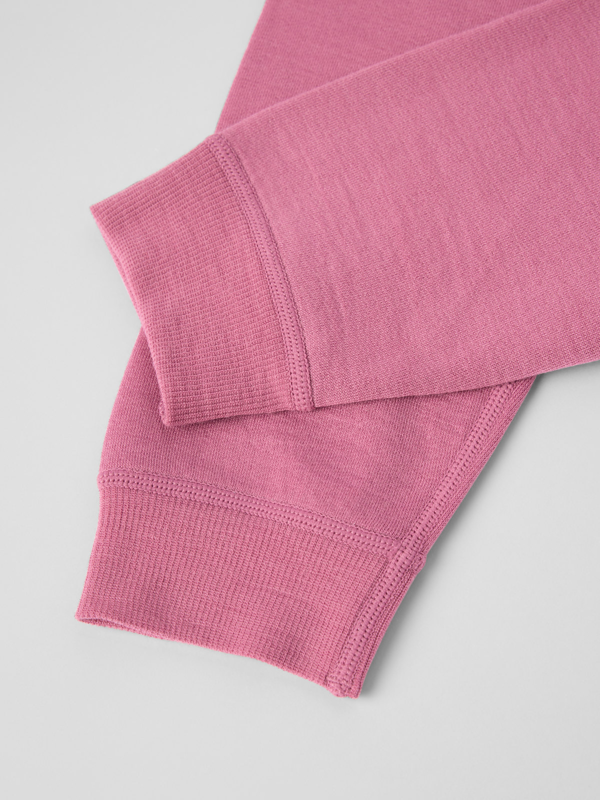 Varm och tjock byxa i mjuk ullfrotté – självklar favorit i kylan! Byxan är tillverkad av merinoull som effektivt suger upp fukt och hjälper till att reglera kroppstemperaturen. Frottén håller luften intill kroppen som ett värmande lager, och ullen i sig håller värmen samtidigt som den andas. Matcha med tillhörande tröja!