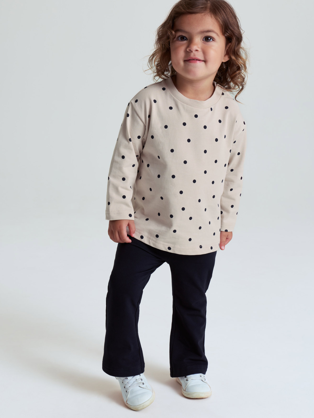 Byxa i ekologisk bomull med mjuk sweatshirtkvalitet och borstad insida – en riktig höstfavorit! Byxan har elastisk midja som går att justera med knapphålsresår. Bensluten är utsvängda.