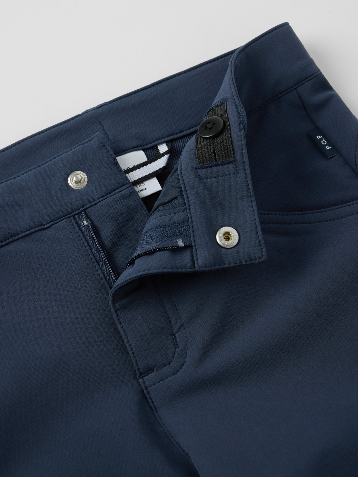 Shortsen har två framfickor och en benficka som stängs med tryckknapp.