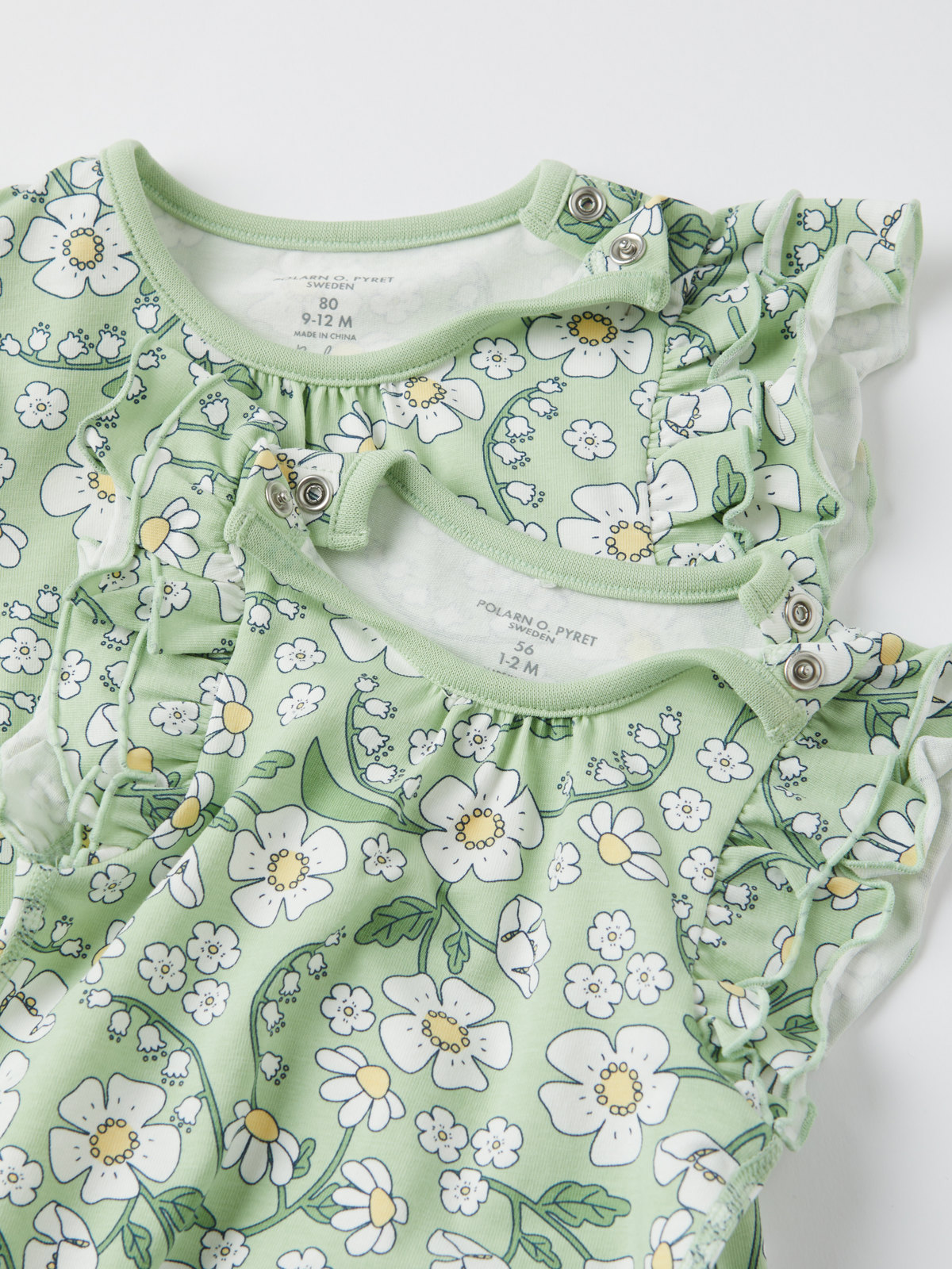 Storlek 50-68 har tryckknappar på båda axlarna.