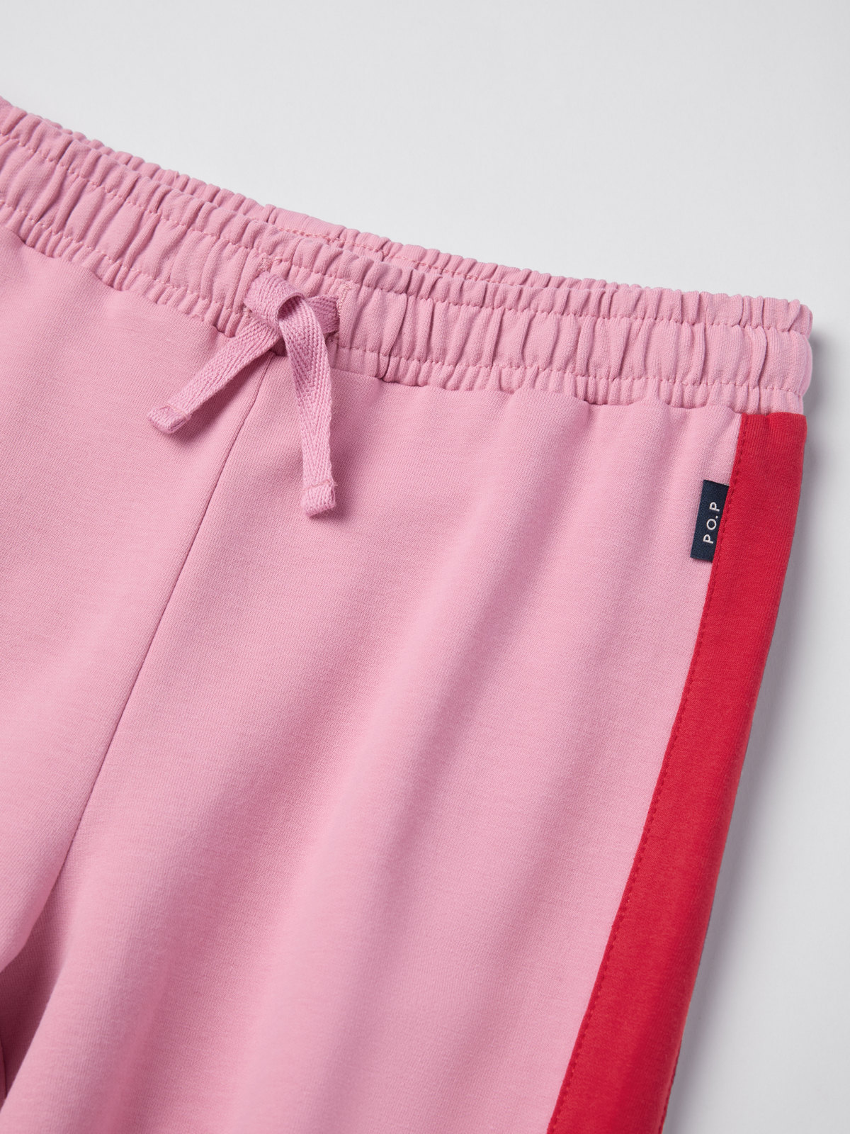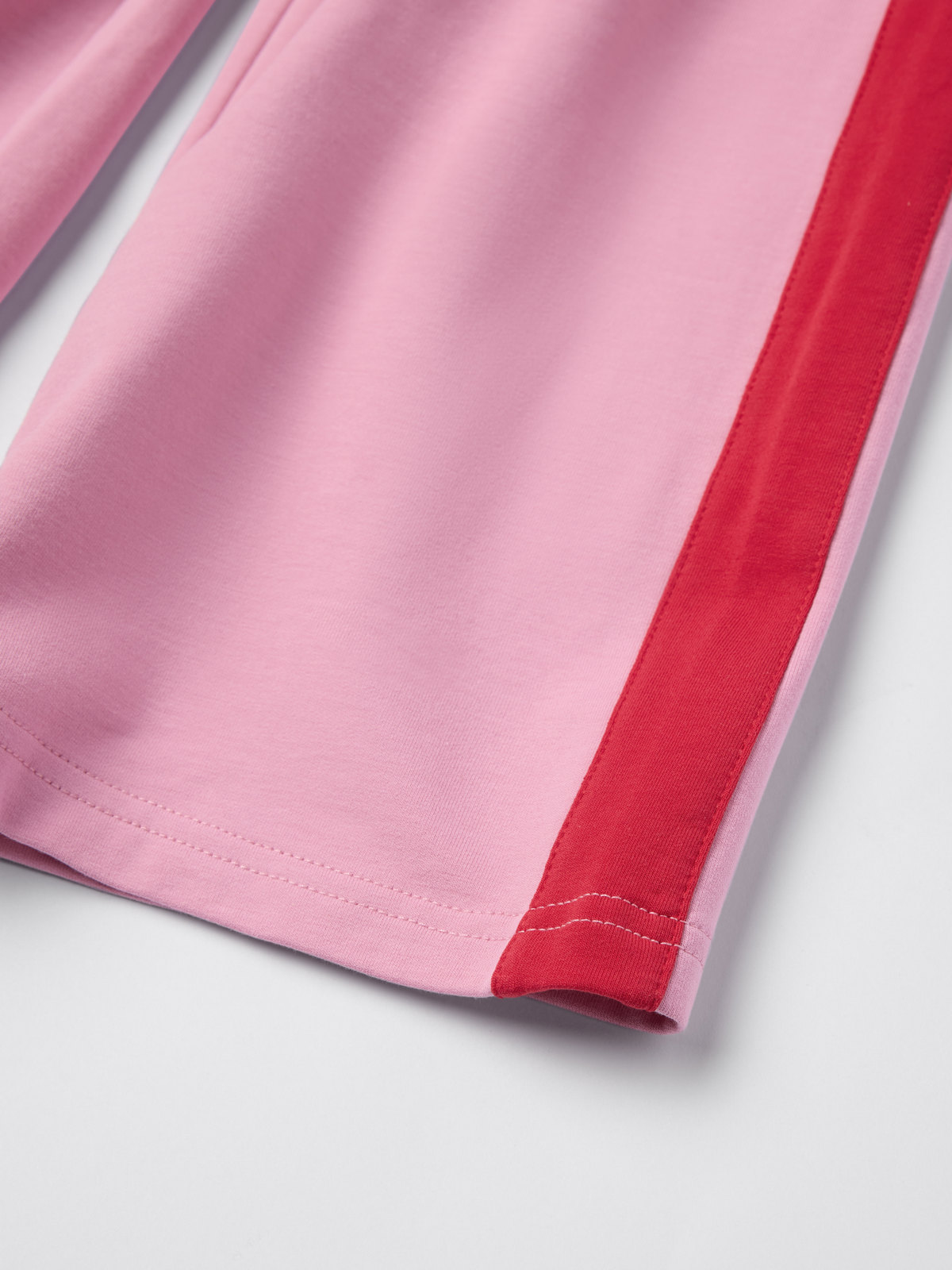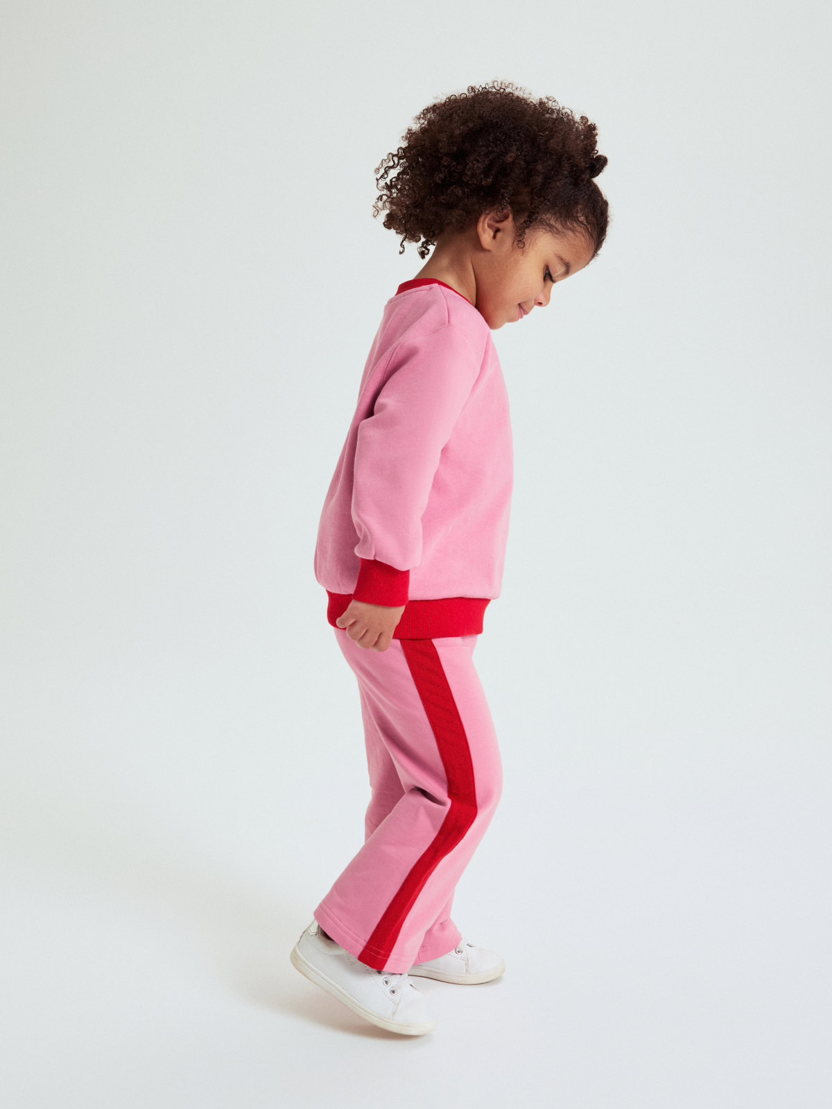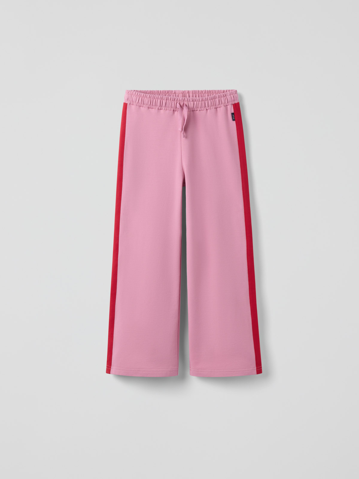 Byxa i 100 % ekologisk bomull med mjuk sweatshirtkvalitet. Byxan har kontrastfärgade revärer i sidorna och raka ben. Den elastiska midjan kan justeras med knytband.