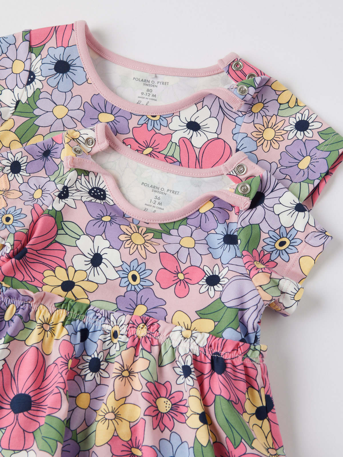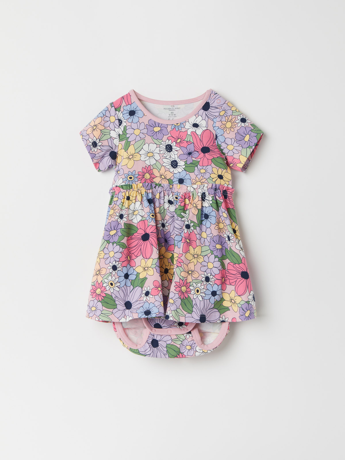 Bodyn är helmönstrad med blommor och har dolda tryckknappar på ena axeln samt i grenen för att underlätta klädbyten.