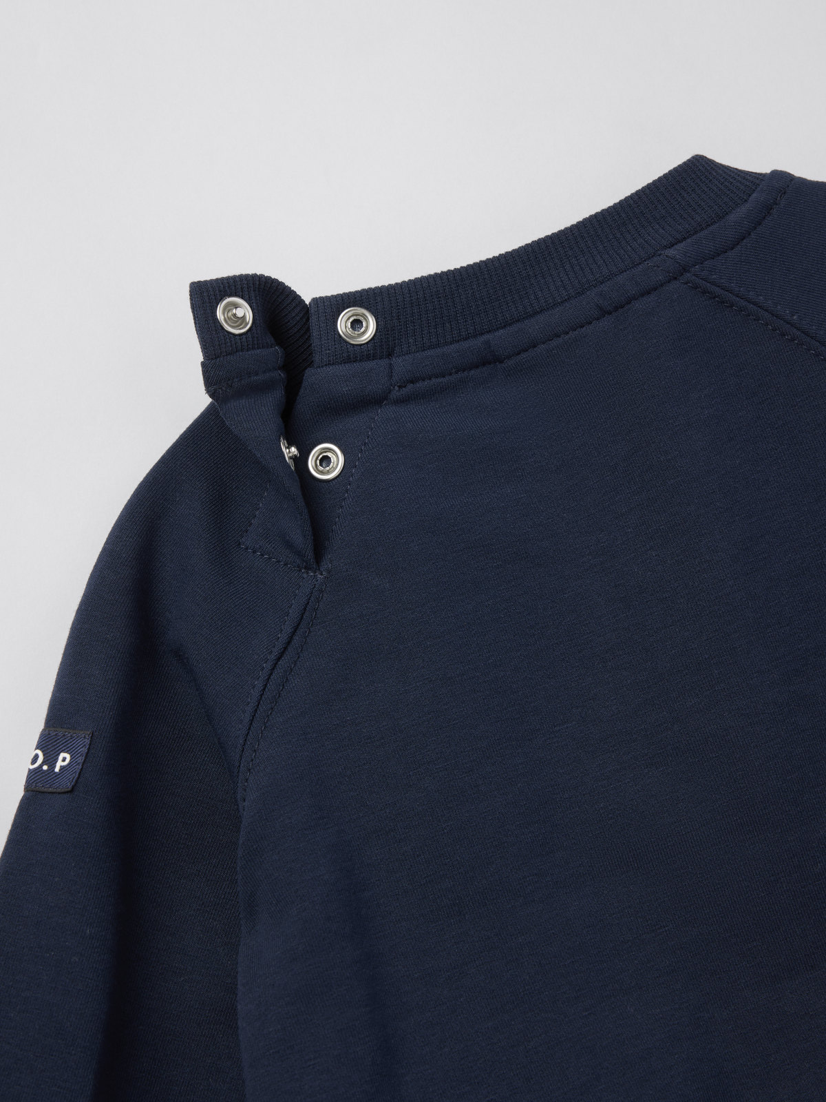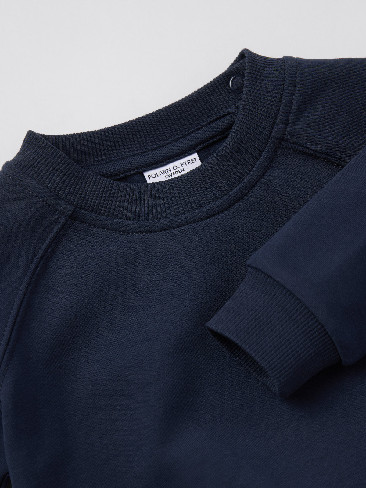 Tröja i 100 % ekologisk bomull med mjuk sweatshirtkvalitet, för baby. Perfekt att ha till alla tillfällen! Tröjan har ribbad mudd i halsringning och ärmslut. Tryckknapparna bak på ena axeln underlättar klädbyten.