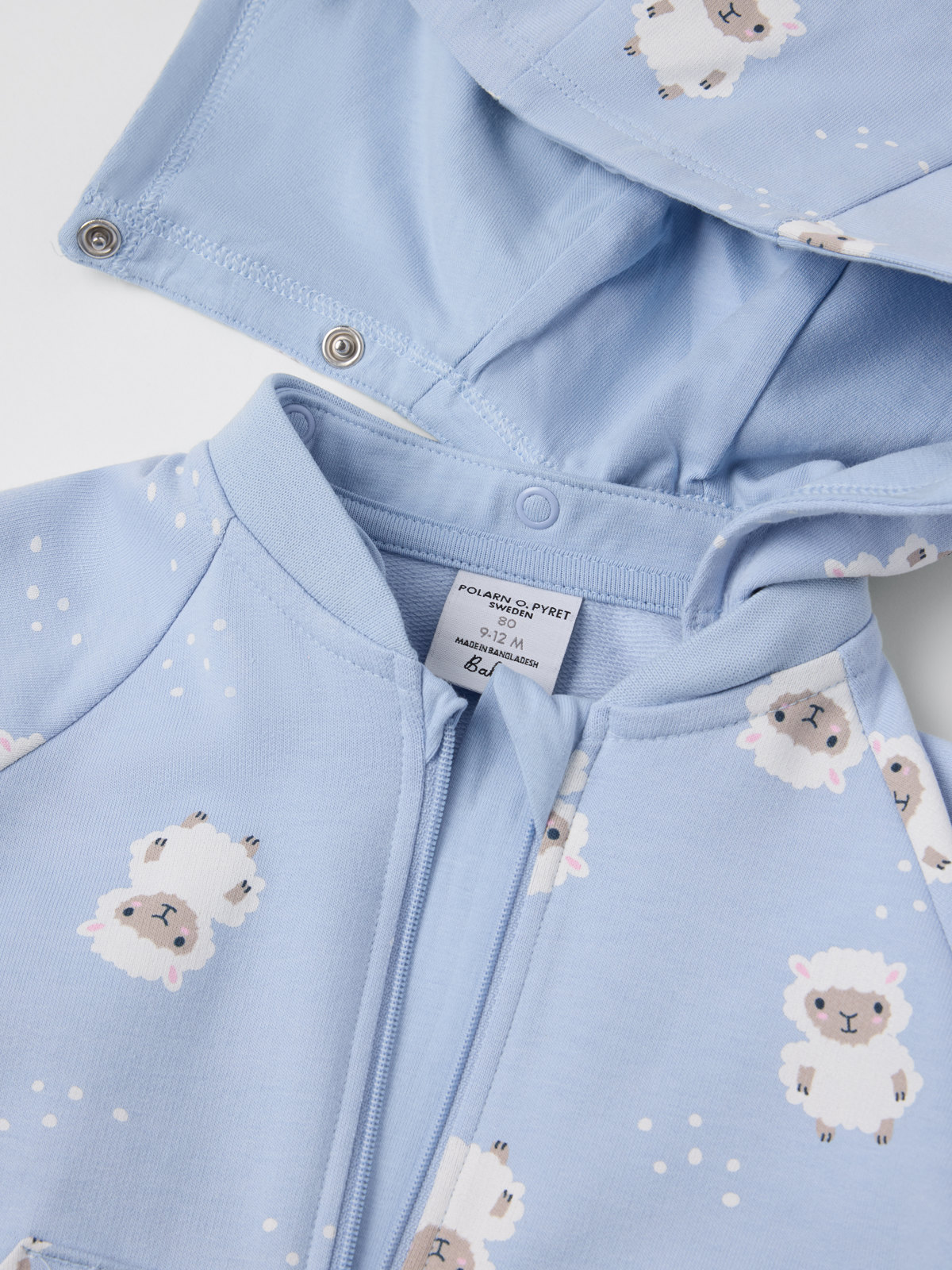 Storlek 80-92 har avtagbar huva som går att fästas med tryckknappar.