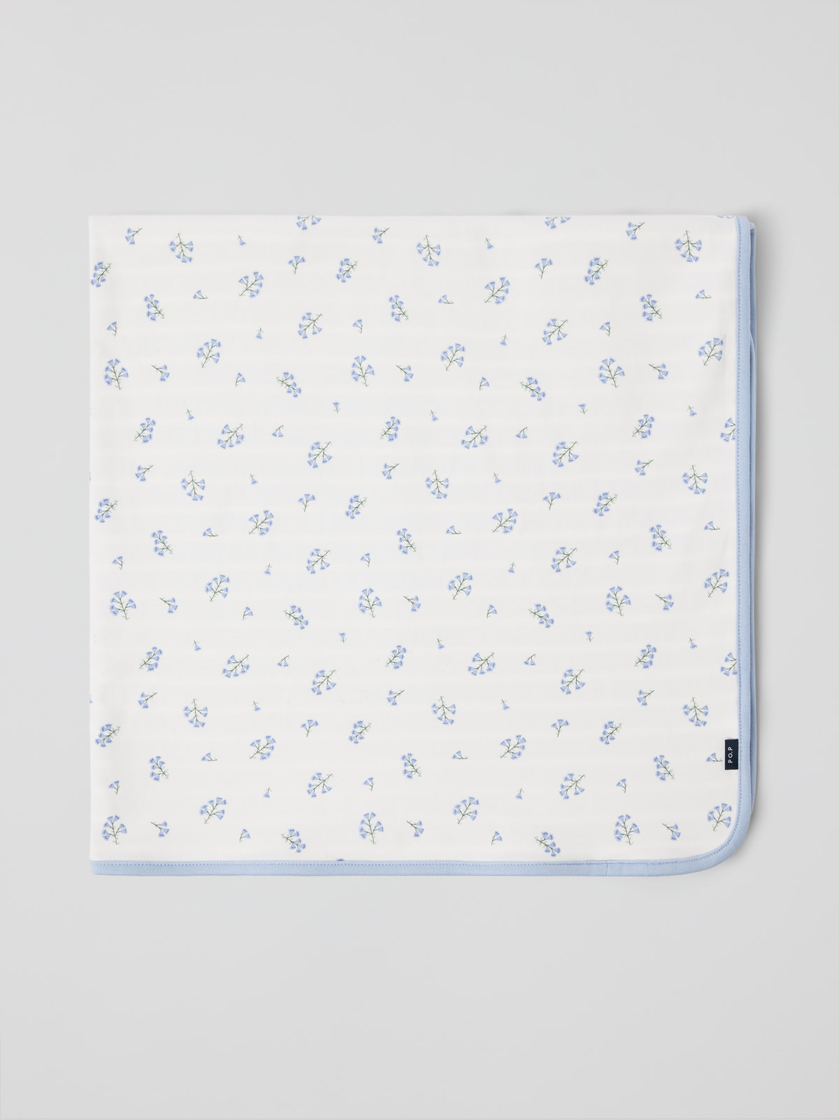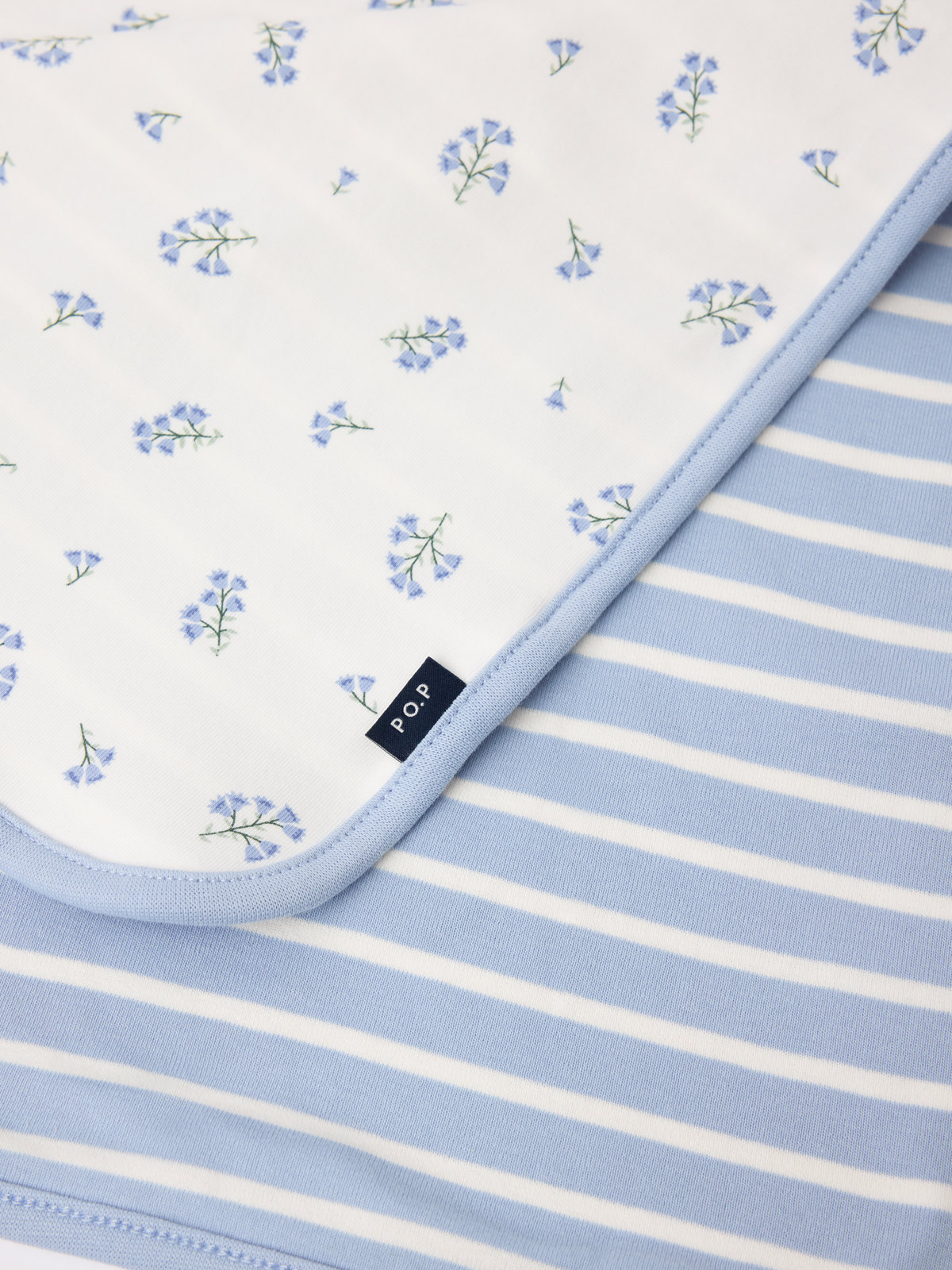 Mjuk och skön babyfilt i ekologisk bomull som är skonsam mot känslig hud – perfekt att ha i vagnen eller hemma. Filten har ett fint print på ena sidan och vår klassiska rand på den andra.