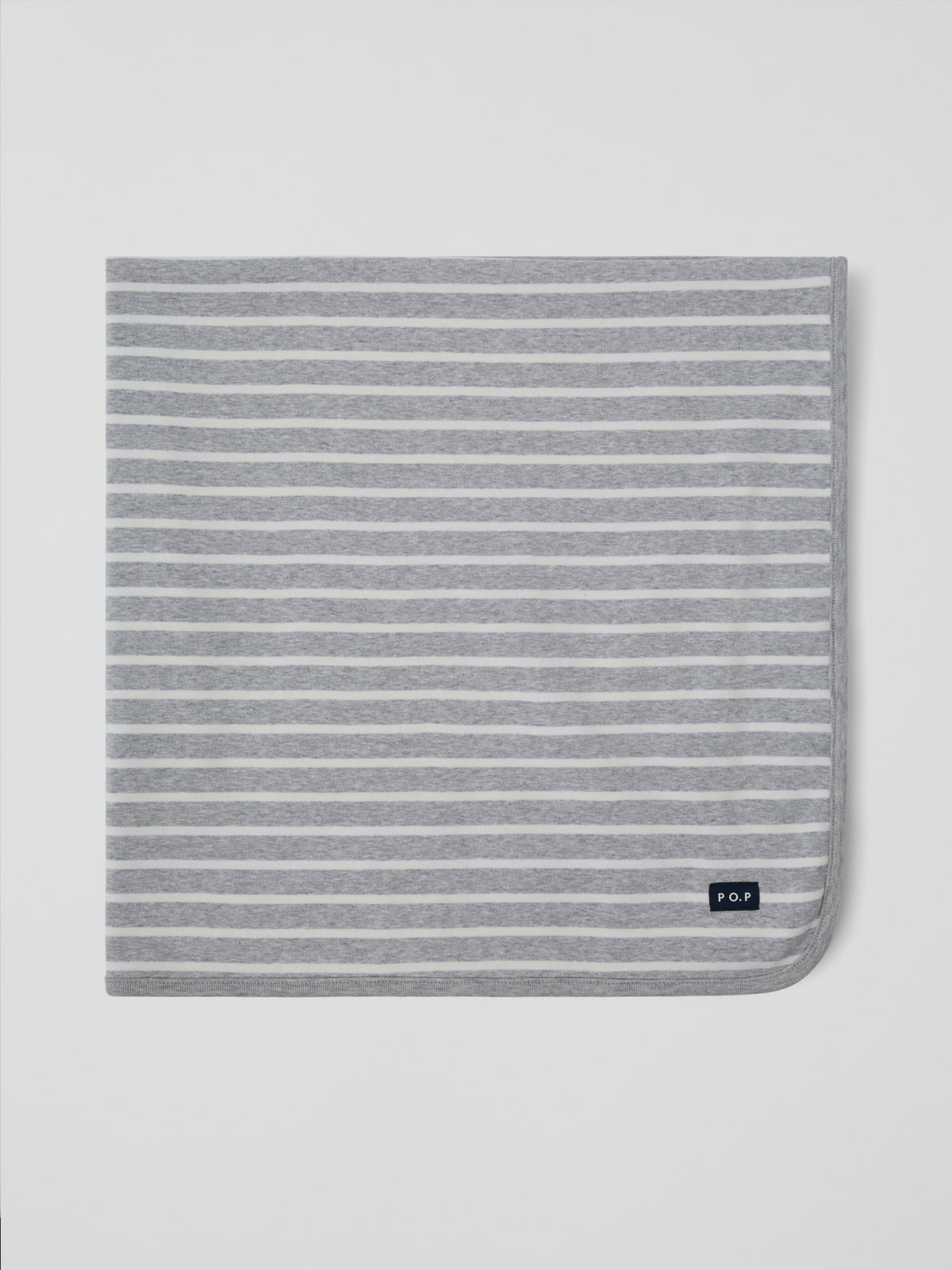 Mjuk och skön babyfilt i ekologisk bomull med vår klassiska rand på den andra. Perfekt att ha i vagnen eller hemma.