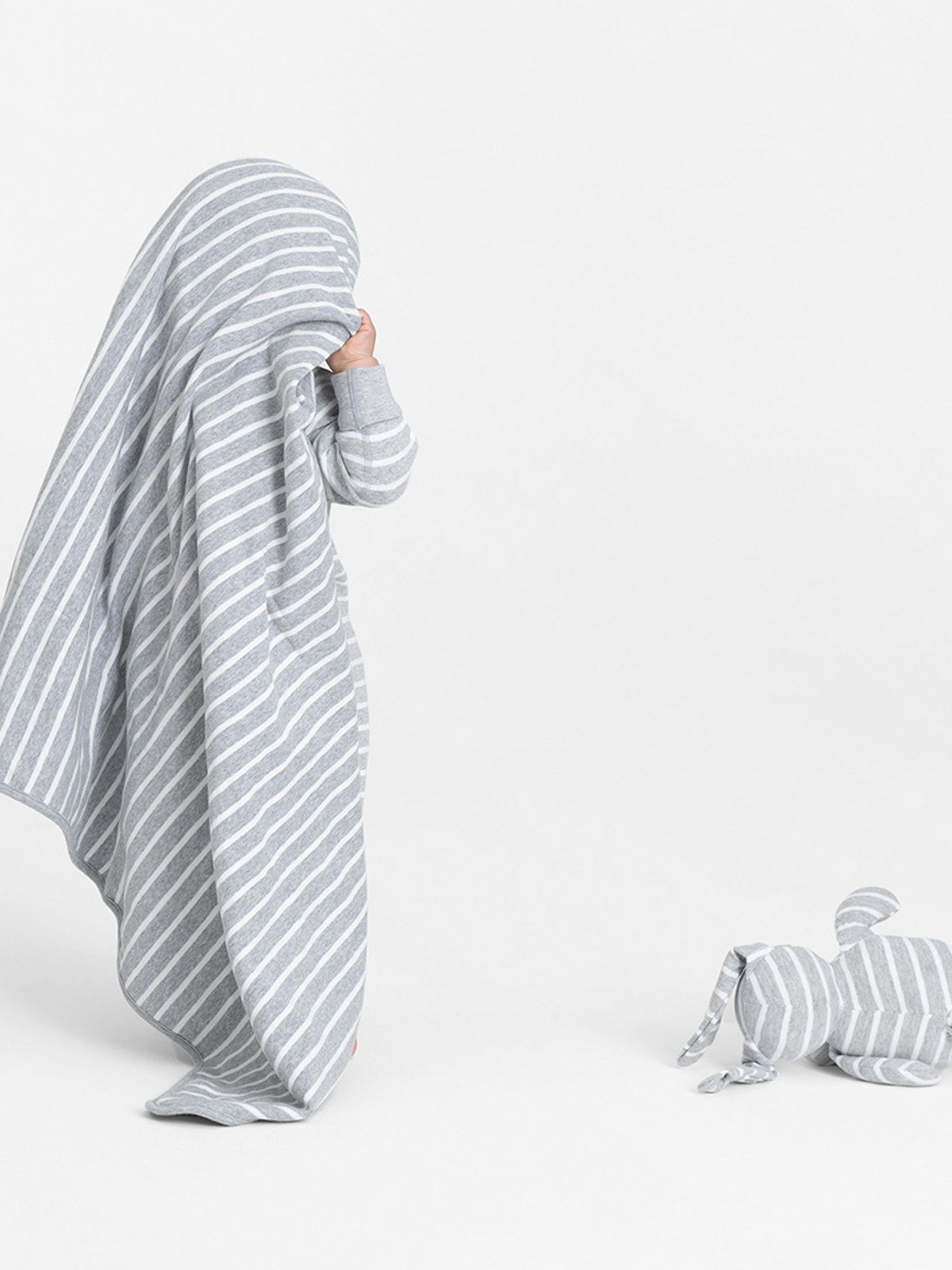 Filt i vår klassiska rand. Enfärgad på en sida. Mått: 84 x 84 cm.
