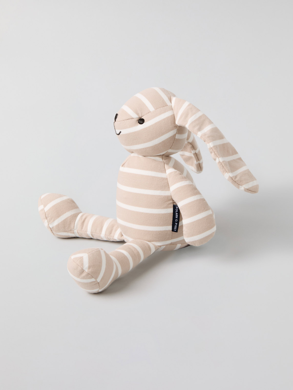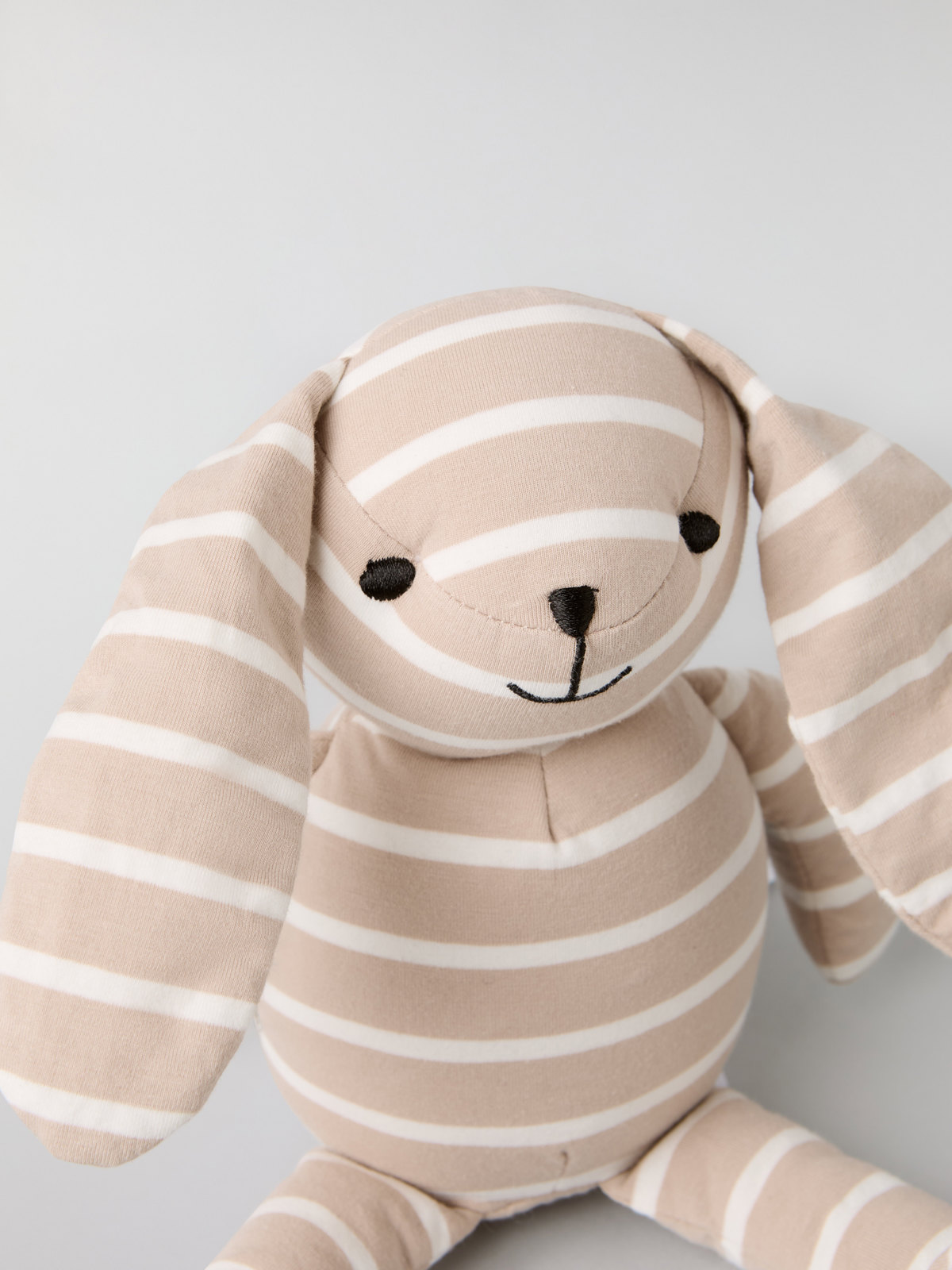 Mjuk gosedjurskanin i ekologisk bomull med vår klassiska rand – en perfekt första myskompis!