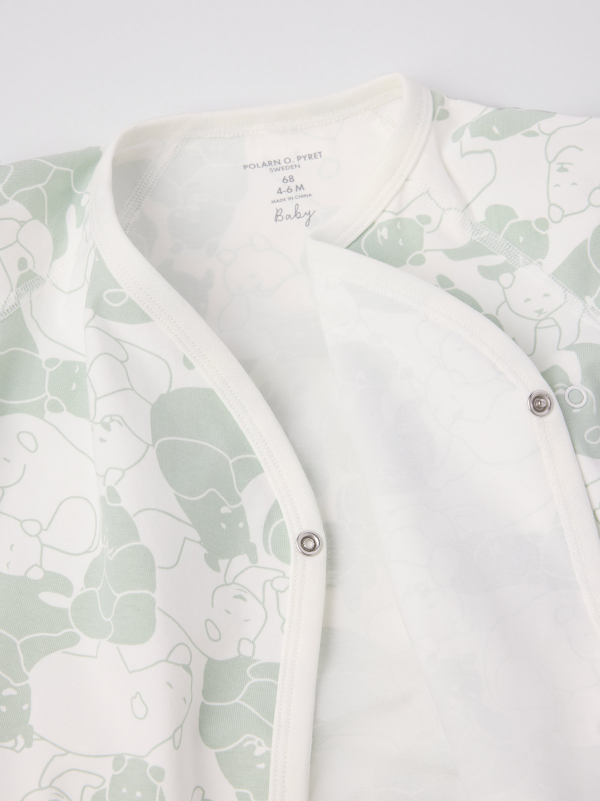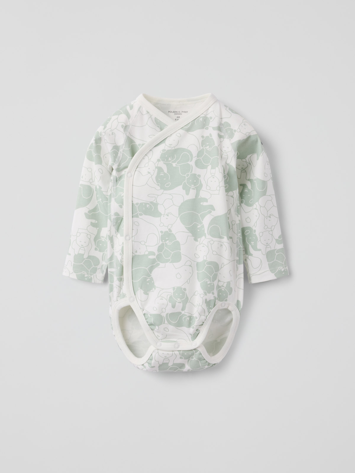 Omlottbody i 100 % ekologisk bomull för baby. Bodyn är sydd med extra mjuka sömmar som inte skaver mot känslig hud. Tryckknapparna längs omlottöppningen underlättar klädbyten.