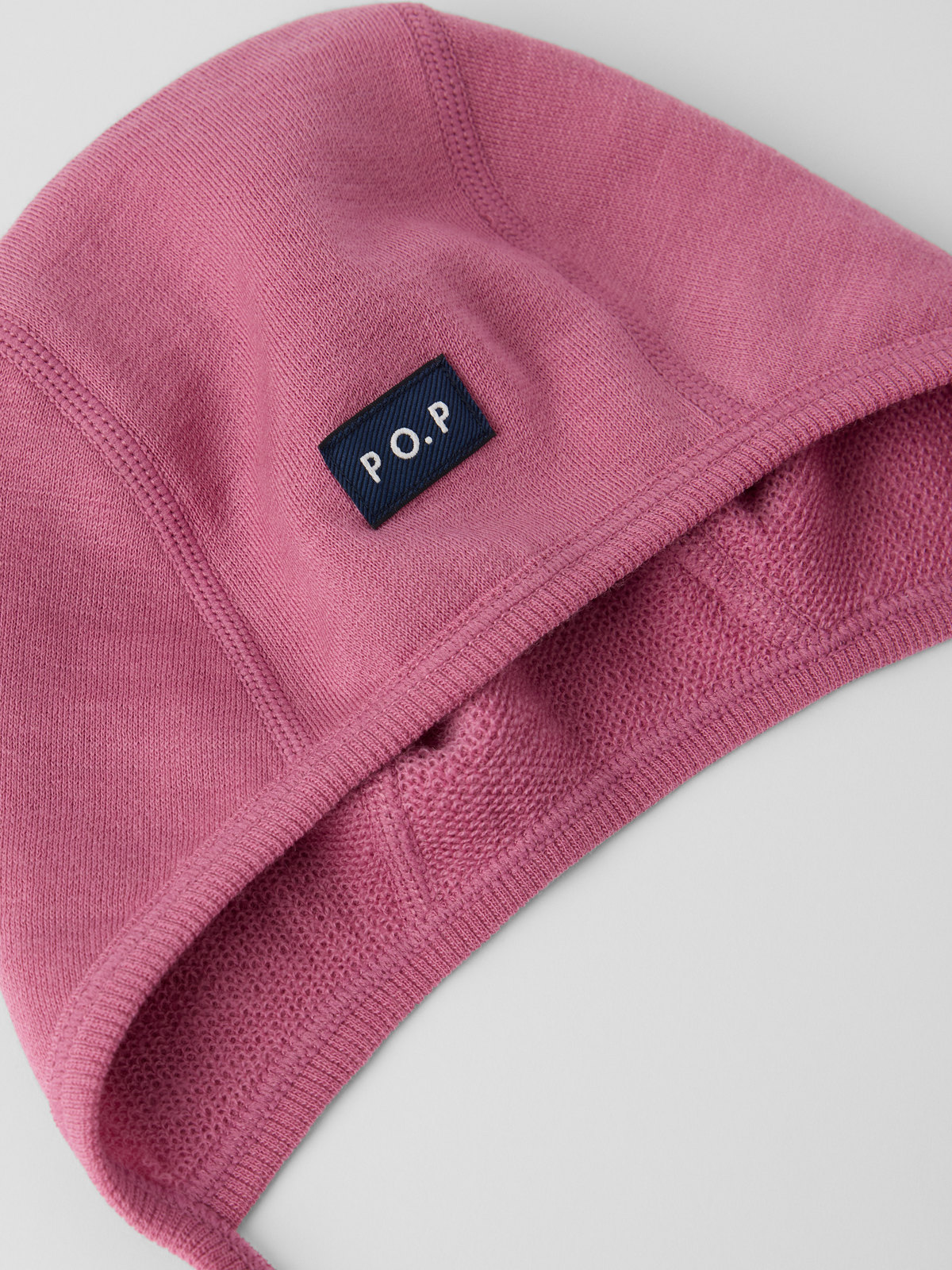 Hjälmmössa för baby i värmande ullfrotté av merinoull – ett måste i kylan! Ullfrottén suger effektivt upp fukt och håller barnet varmt och torrt, den gör även att hjälmen känns lite kraftigare och öglorna i frottén gör att luften cirkulerar. Mössan är sydd med extra mjuka sömmar som inte skaver.