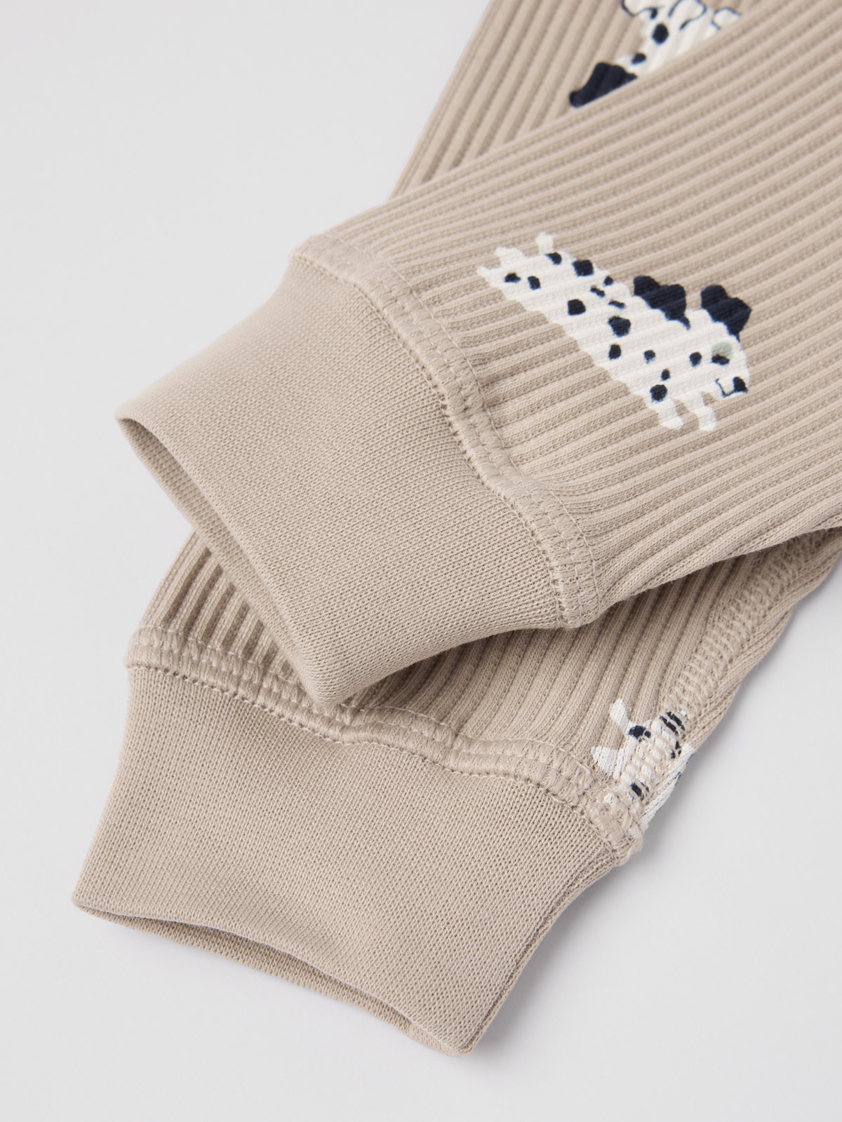 Ribbad byxa i mjuk ekologisk bomull för baby. Byxan är sydd med extra mjuka, platta sömmar som inte skaver mot känslig hud och har mjuka muddar i benslut och justerbar midja med knapphålsresår.